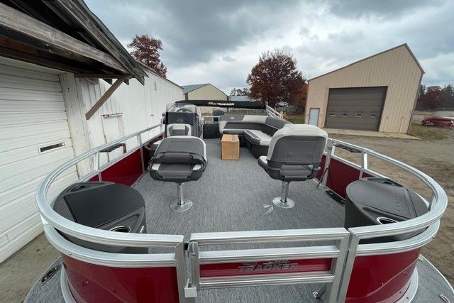 Up to eight fishin' buddies can take to the dual fishing decks of this redesigned fishin' pontoon. Three swiveling fishing chairs around a 10-gal. bow livewell and an 8-gal. aft livewell headline the list of features that make this the perfect boat for casting lines to catch fish and memories. When the fishing's done, sprawl out on the L-shaped lounge and crank up the stereo. The new and improved boarding ladder makes follow-up cannonballs a breeze. Other features new to the 2026 model year include three extra cubic feet of storage space, more cupholders, in-lounge storage, and a new seat in front of the helm.