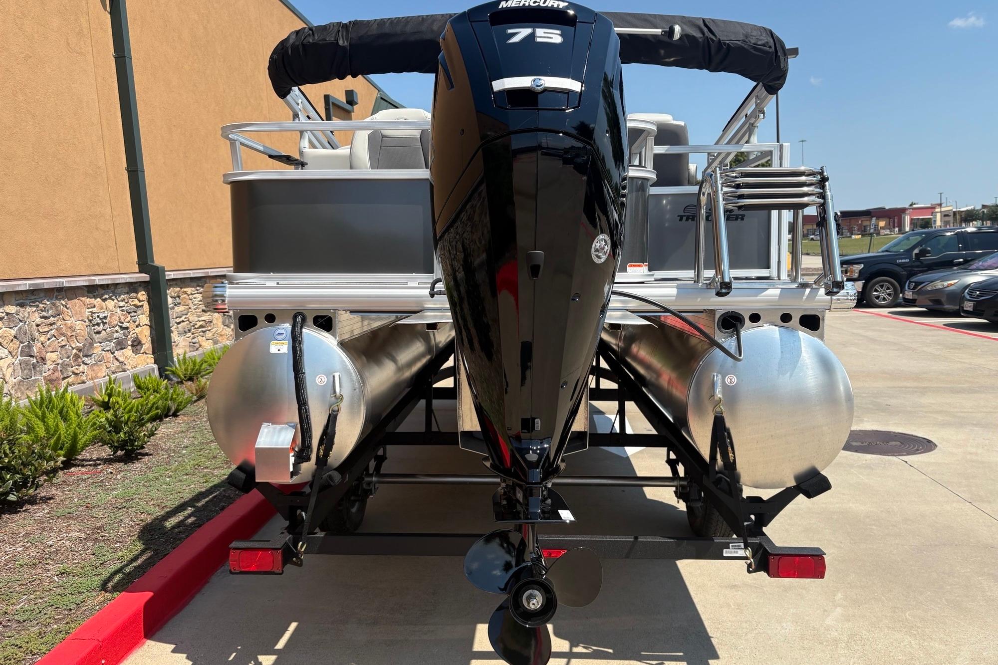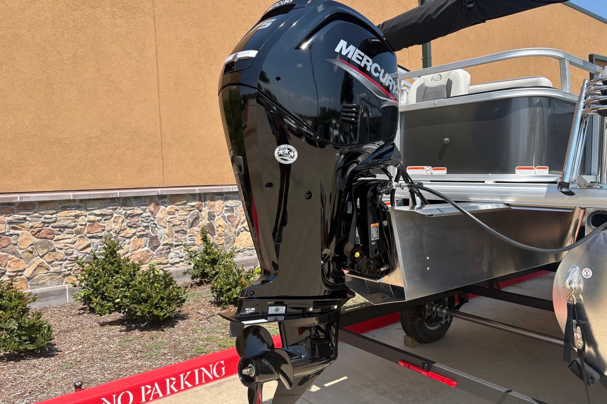 Up to eight fishin' buddies can take to the dual fishing decks of this redesigned fishin' pontoon. Three swiveling fishing chairs around a 10-gal. bow livewell and an 8-gal. aft livewell headline the list of features that make this the perfect boat for casting lines to catch fish and memories. When the fishing's done, sprawl out on the L-shaped lounge and crank up the stereo. The new and improved boarding ladder makes follow-up cannonballs a breeze. Other features new to the 2026 model year include three extra cubic feet of storage space, more cupholders, in-lounge storage, and a new seat in front of the helm.