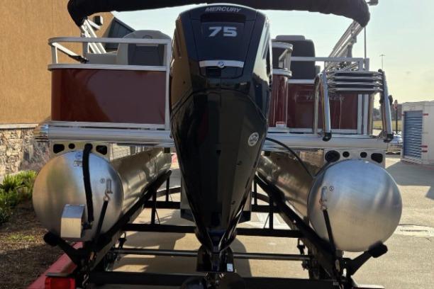 Up to eight fishin' buddies can take to the dual fishing decks of this redesigned fishin' pontoon. Three swiveling fishing chairs around a 10-gal. bow livewell and an 8-gal. aft livewell headline the list of features that make this the perfect boat for casting lines to catch fish and memories. When the fishing's done, sprawl out on the L-shaped lounge and crank up the stereo. The new and improved boarding ladder makes follow-up cannonballs a breeze. Other features new to the 2026 model year include three extra cubic feet of storage space, more cupholders, in-lounge storage, and a new seat in front of the helm.