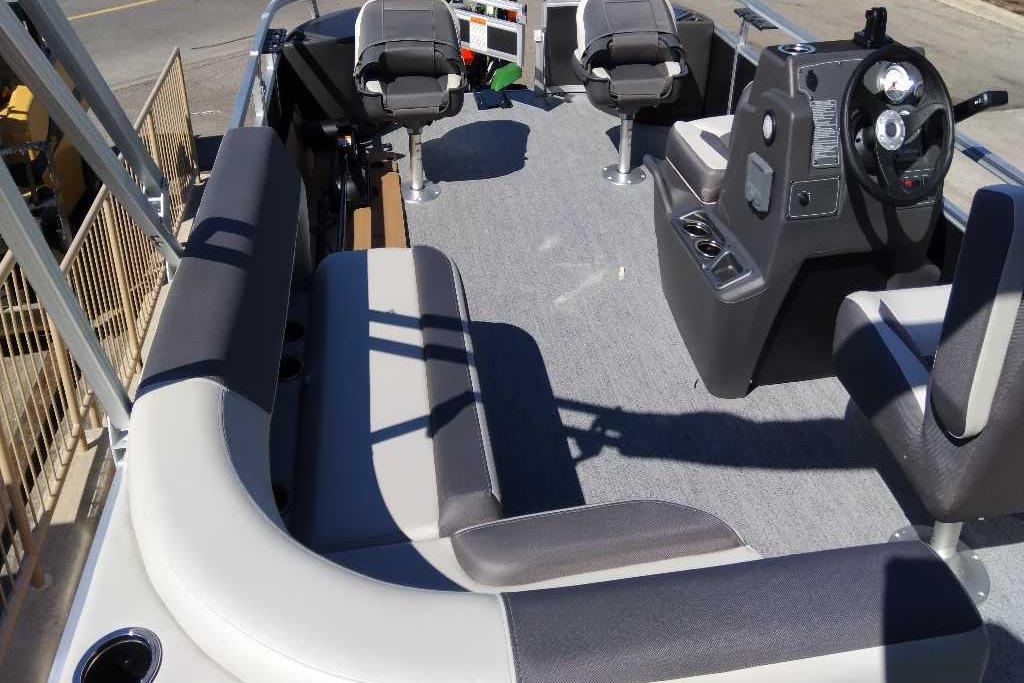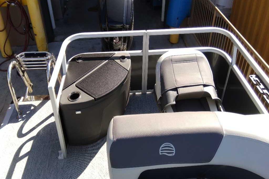 Up to eight fishin' buddies can take to the dual fishing decks of this redesigned fishin' pontoon. Three swiveling fishing chairs around a 10-gal. bow livewell and an 8-gal. aft livewell headline the list of features that make this the perfect boat for casting lines to catch fish and memories. When the fishing's done, sprawl out on the L-shaped lounge and crank up the stereo. The new and improved boarding ladder makes follow-up cannonballs a breeze. Other features new to the 2026 model year include three extra cubic feet of storage space, more cupholders, in-lounge storage, and a new seat in front of the helm.