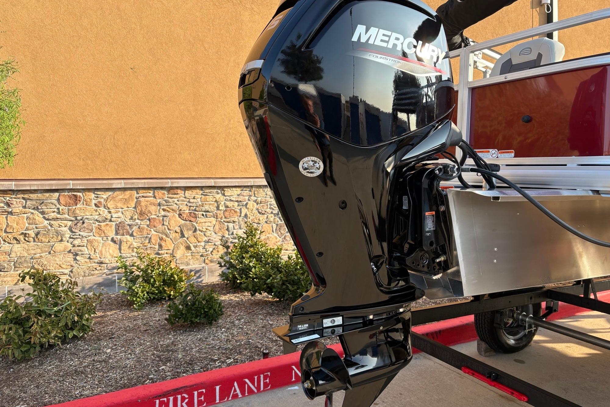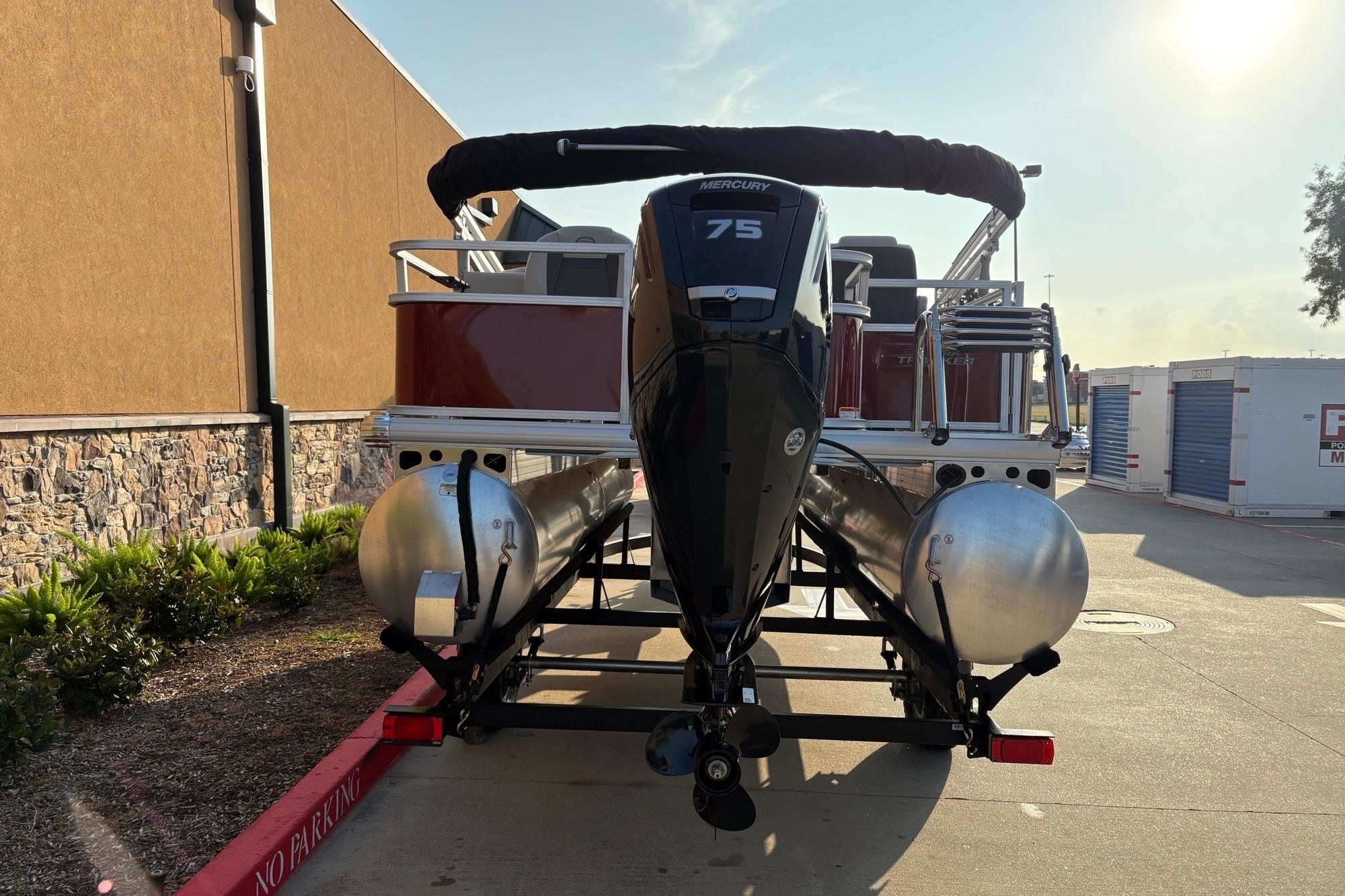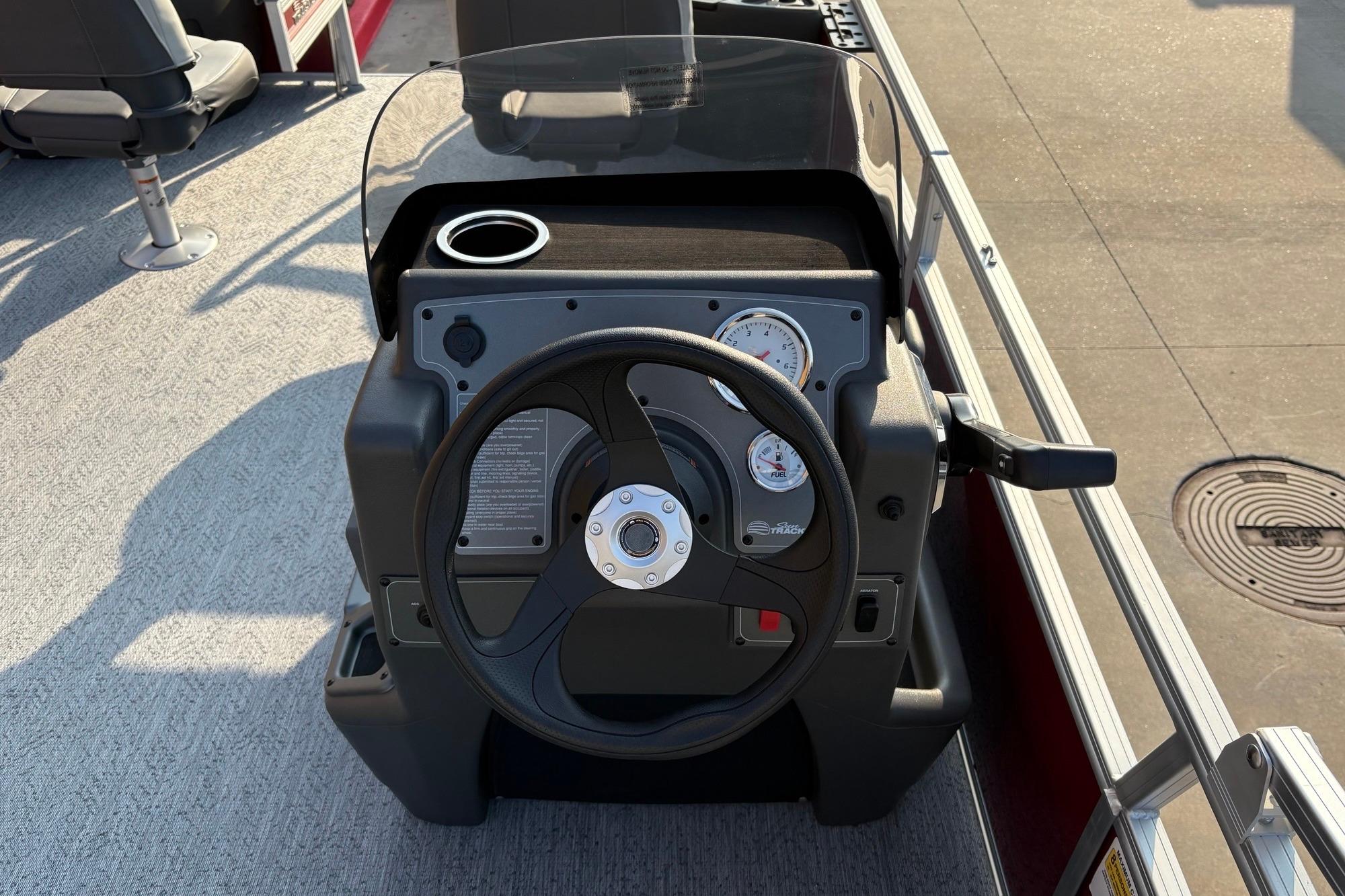Up to eight fishin' buddies can take to the dual fishing decks of this redesigned fishin' pontoon. Three swiveling fishing chairs around a 10-gal. bow livewell and an 8-gal. aft livewell headline the list of features that make this the perfect boat for casting lines to catch fish and memories. When the fishing's done, sprawl out on the L-shaped lounge and crank up the stereo. The new and improved boarding ladder makes follow-up cannonballs a breeze. Other features new to the 2026 model year include three extra cubic feet of storage space, more cupholders, in-lounge storage, and a new seat in front of the helm.