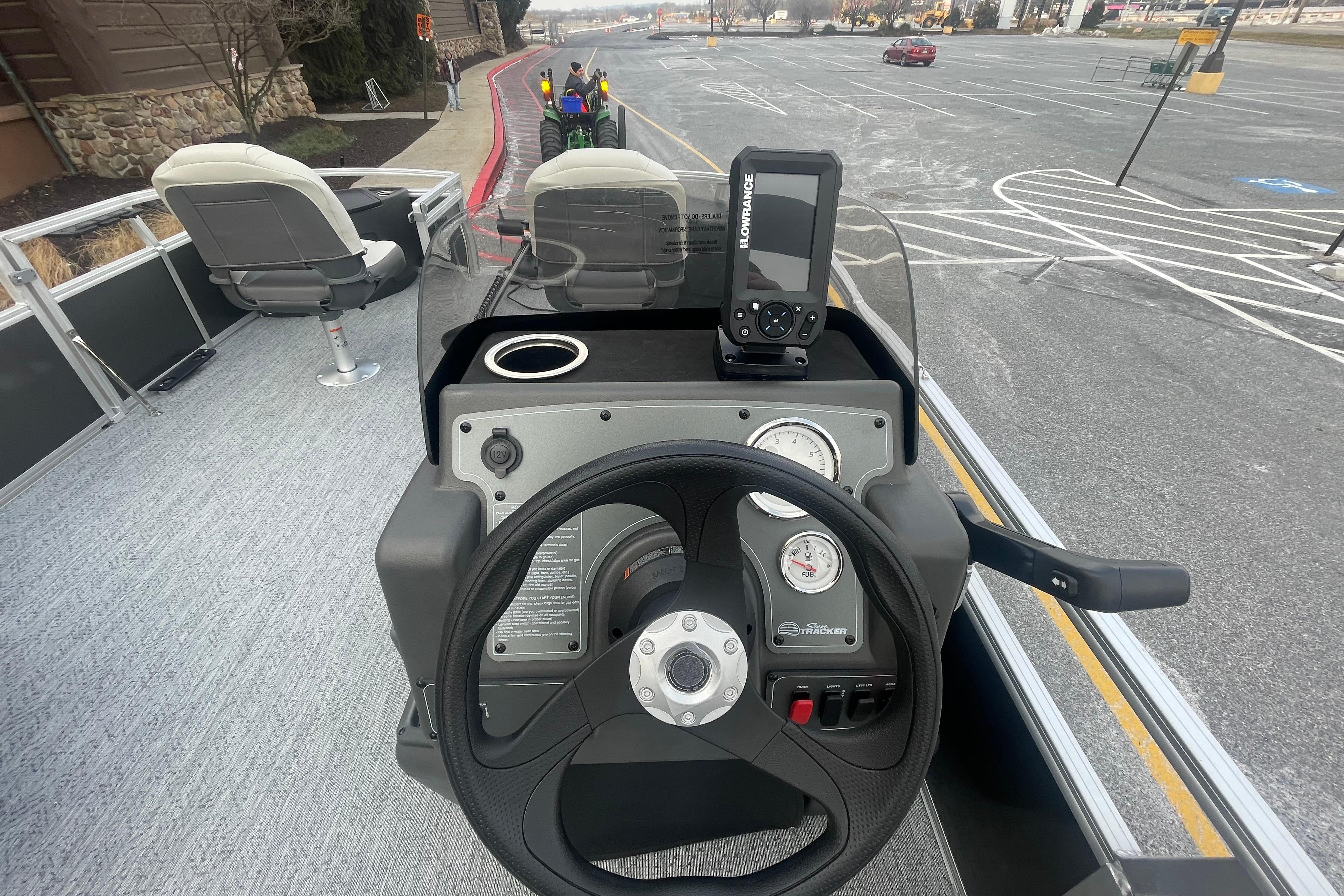 • Driver console w/vertical rod holder, integrated storage, drink holders & side-mounted controls