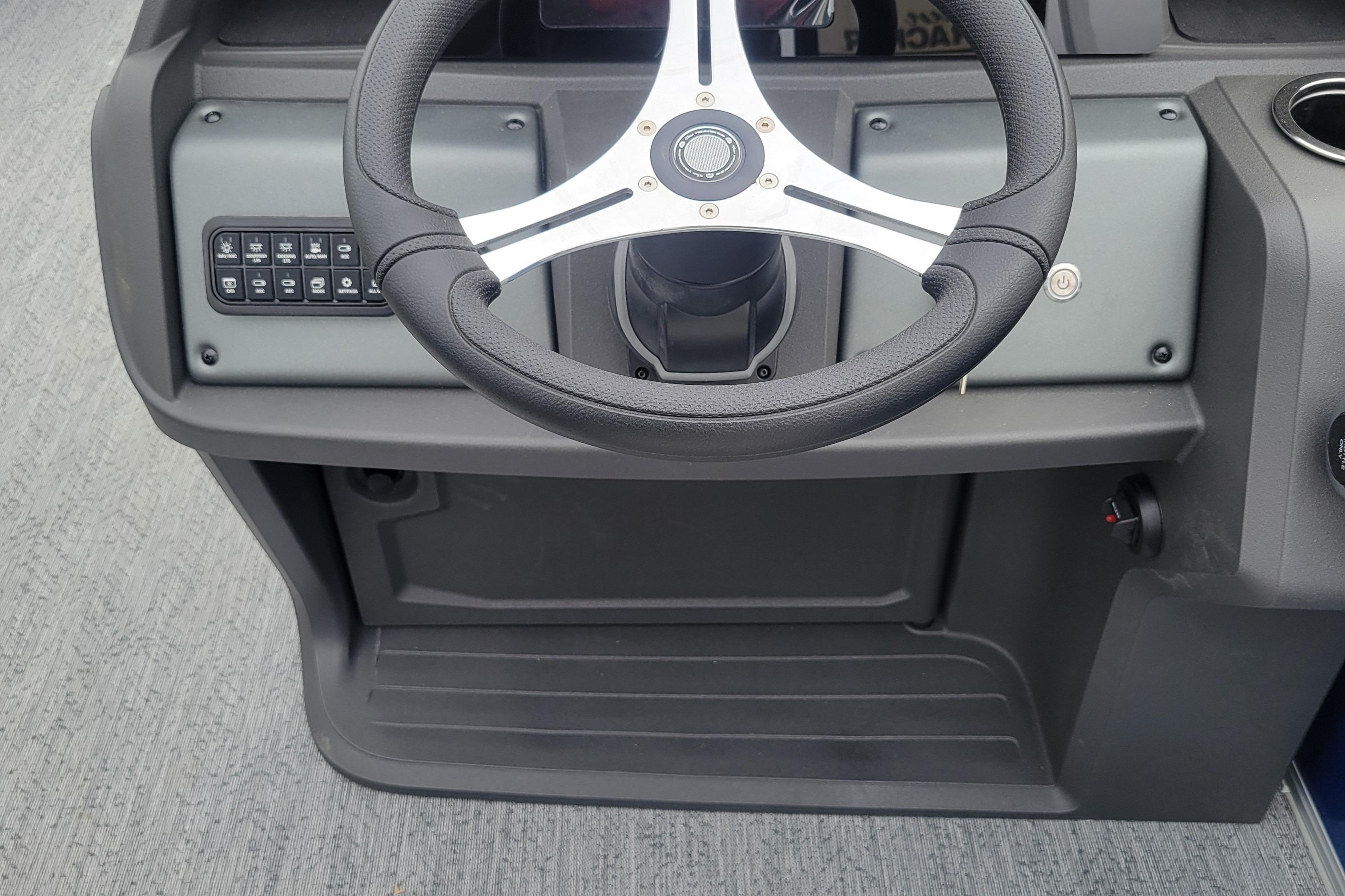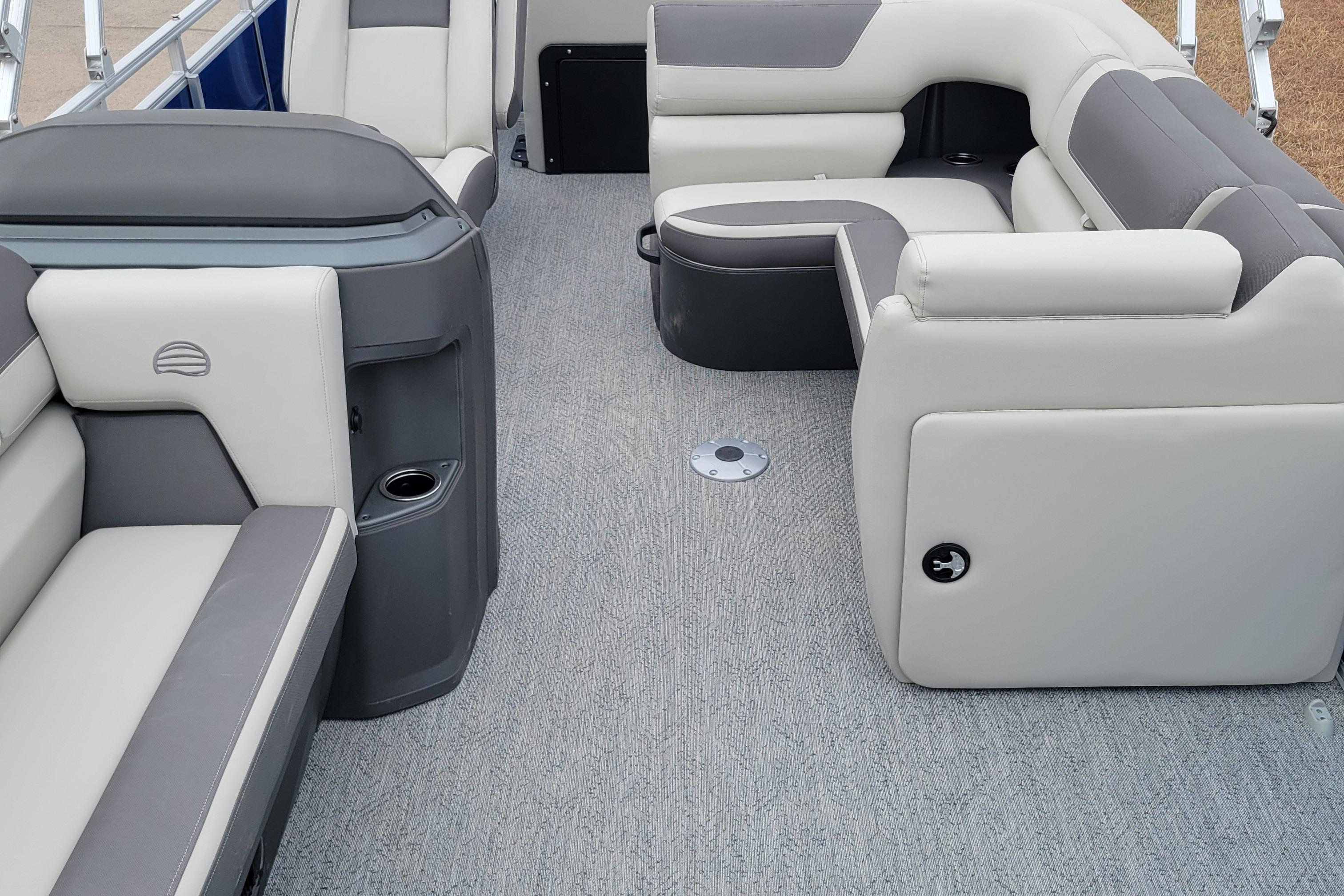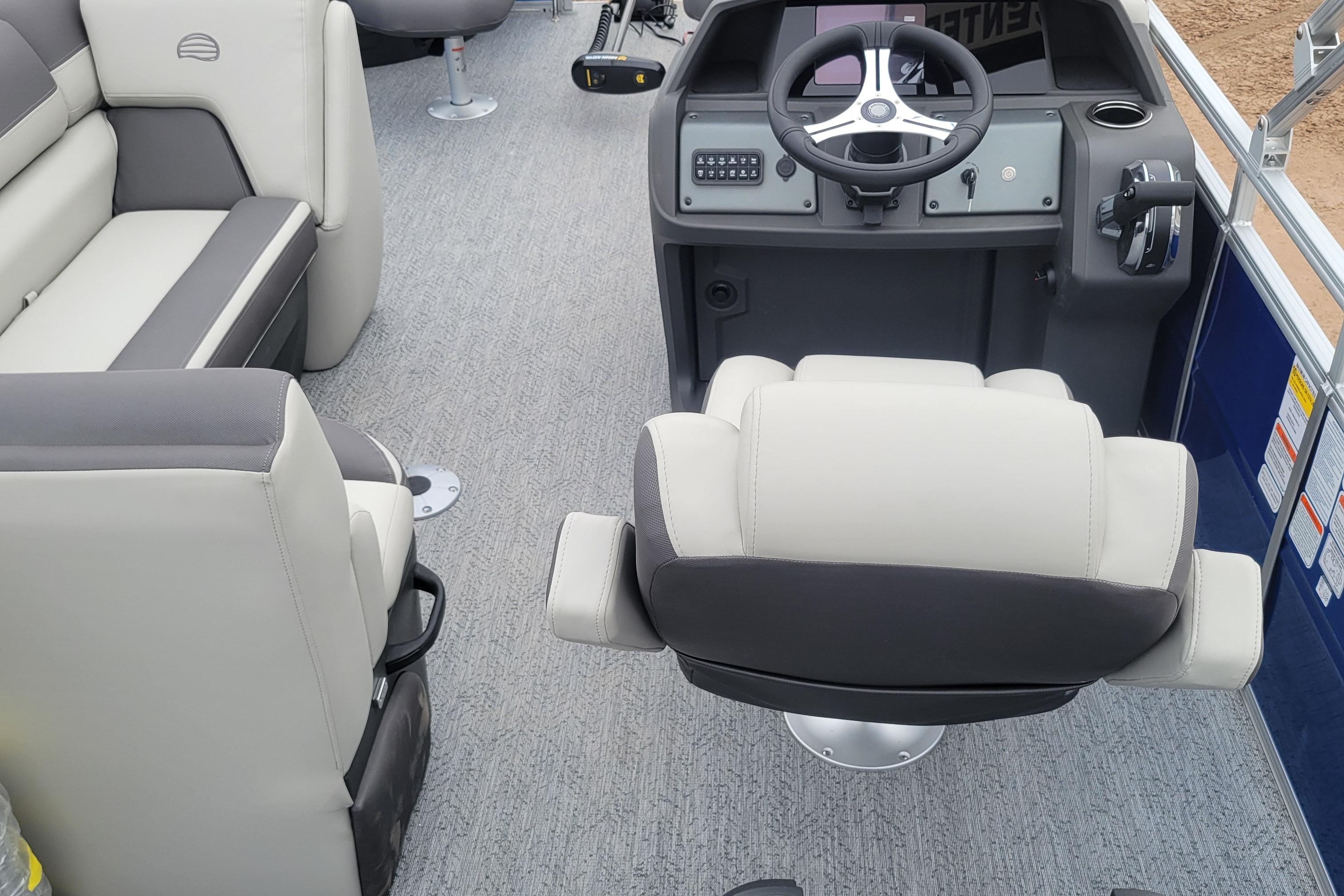 This fishing pontoon’s 19' 10" deck fits up to 10 people looking for a great day of casting lines. When it’s time for lunch, set up the removable table with drink holders near the comfortable L-shaped aft lounge. Your guests can also relax in the lounge seat in front of the driver’s console.