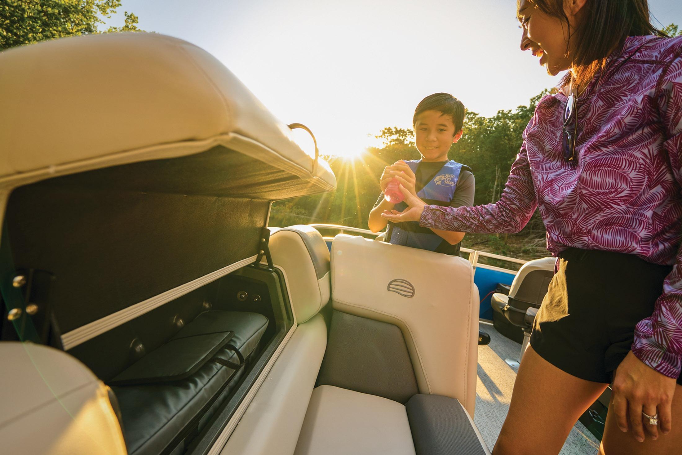 • Bow starboard console couch w/STOW MORE™ & underseat storage
