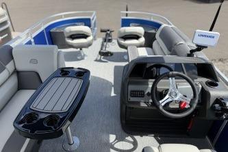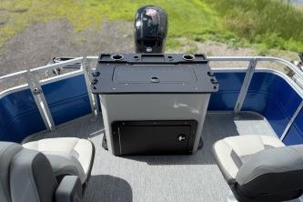 This fishing pontoon’s 19' 10" deck fits up to 10 people looking for a great day of casting lines. When it’s time for lunch, set up the removable table with drink holders near the comfortable L-shaped aft lounge. Your guests can also relax in the lounge seat in front of the driver’s console.