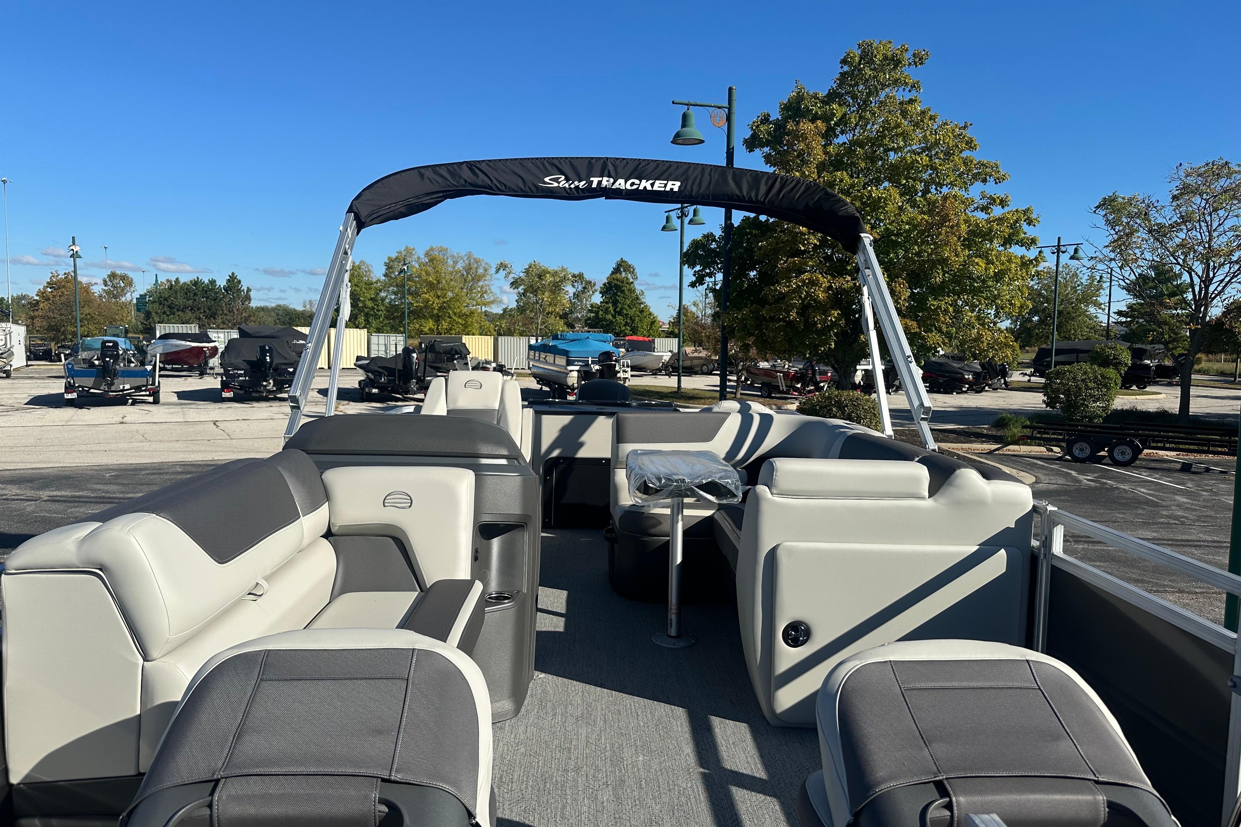 • 9' (2.74 m) Black SUN TRACKER® QuickLift™ Bimini top w/LED courtesy lights, storage pockets & protective boot