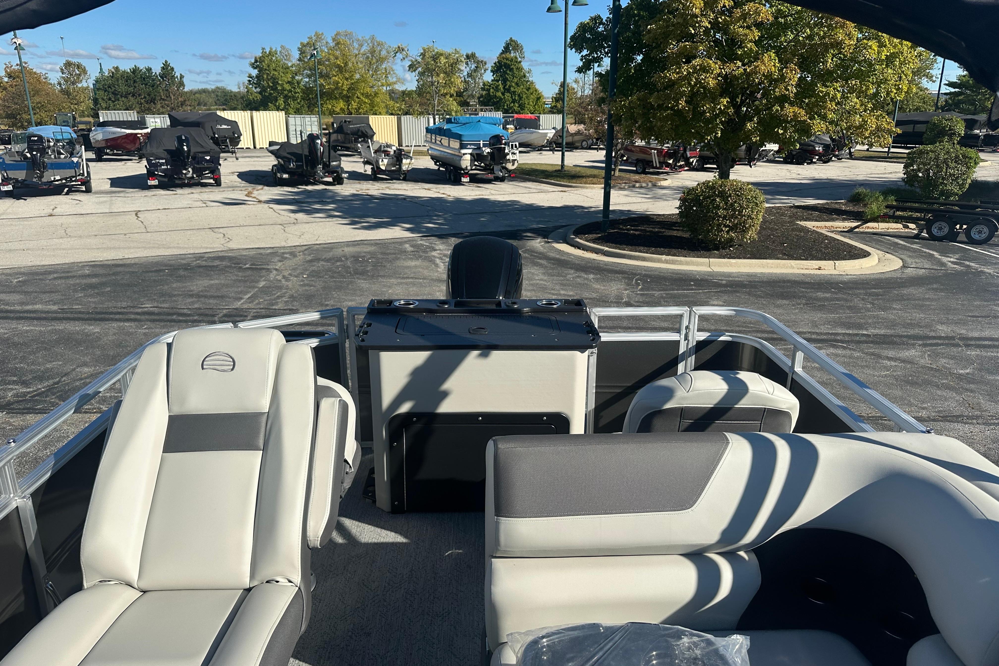This fishing pontoon’s 19' 10" deck fits up to 10 people looking for a great day of casting lines. When it’s time for lunch, set up the removable table with drink holders near the comfortable L-shaped aft lounge. Your guests can also relax in the lounge seat in front of the driver’s console.