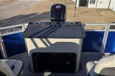 • Front fishing station w/2 pedestal seat base locations; rail-mounted rod & tool holders; & bow starboard storage compartment w/rod & drink holders