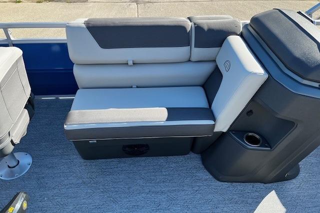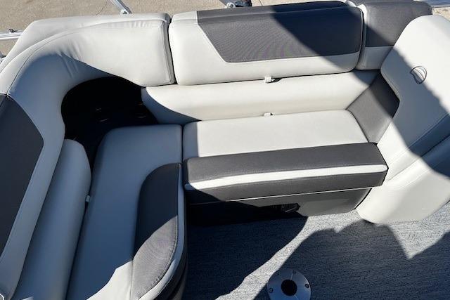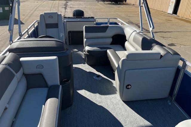 This fishing pontoon’s 19' 10" deck fits up to 10 people looking for a great day of casting lines. When it’s time for lunch, set up the removable table with drink holders near the comfortable L-shaped aft lounge. Your guests can also relax in the lounge seat in front of the driver’s console.
