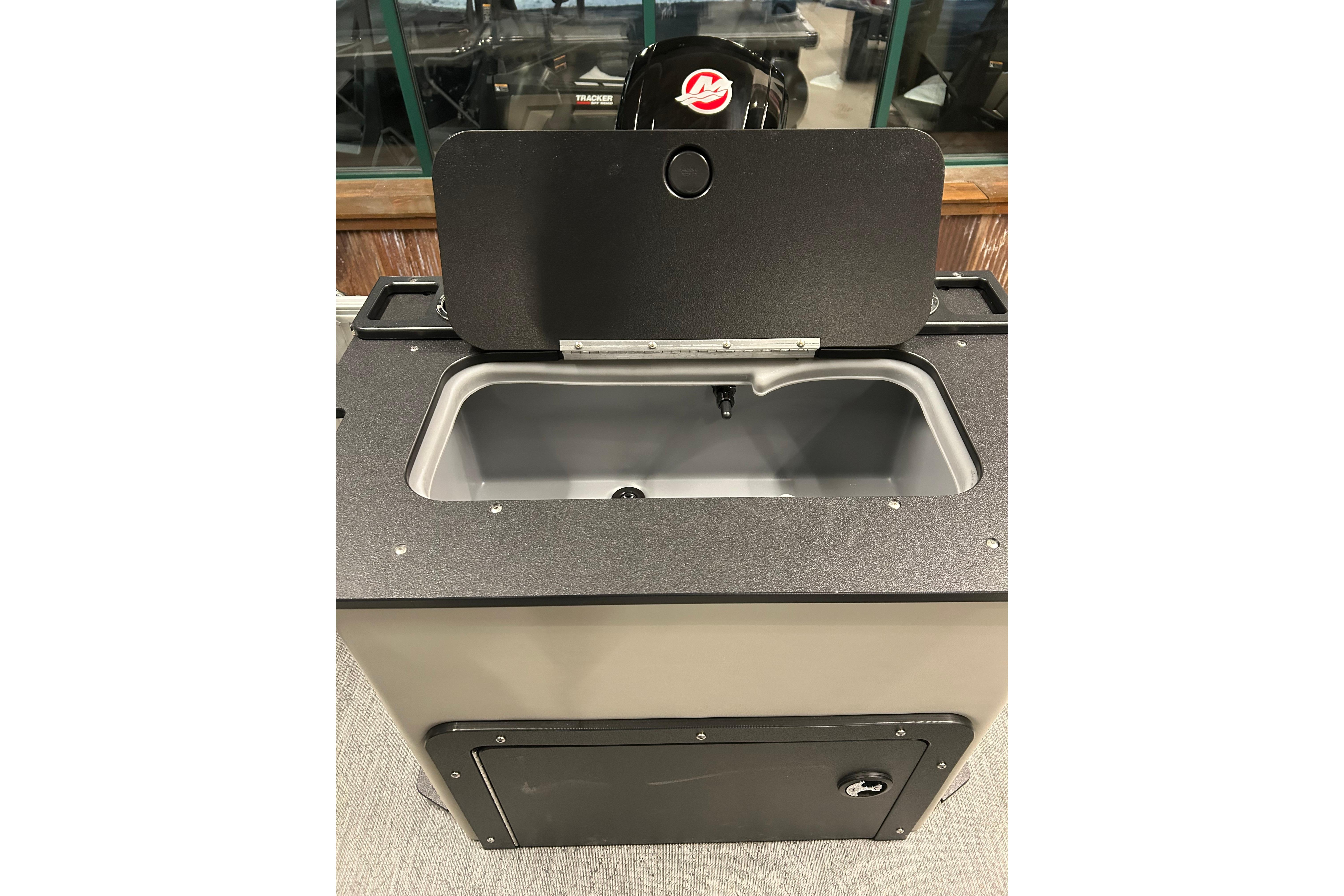 • Bow 10-gal. (37.85 L) aerated livewell w/shutoff valve, drink holder, rod holder & composite lid w/fish ruler