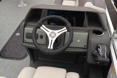 The 2026 SUN TRACKER® FISHIN’ BARGE® 22 XP3's third pontoon, lifting strakes, and hydraulic steering let it operate like a fiberglass boat with the stability only a pontoon can offer.