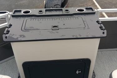 • Front fishing station w/2 pedestal seat base locations; rail-mounted rod & tool holders; & bow starboard storage compartment w/drink holder, rod holder & composite lid w/fish ruler