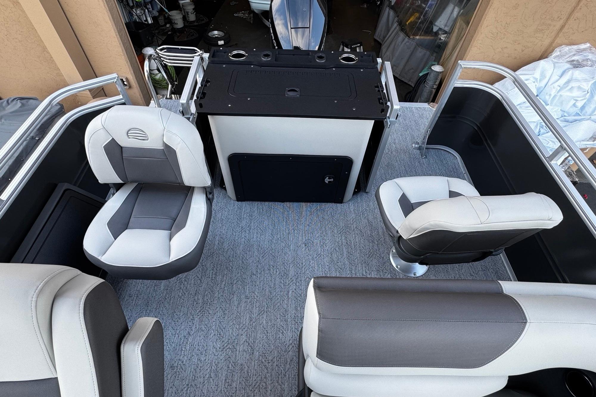 • 4 removable & folding fishing chairs w/heavy-duty 2-3/8" (6 cm) diameter pedestals
