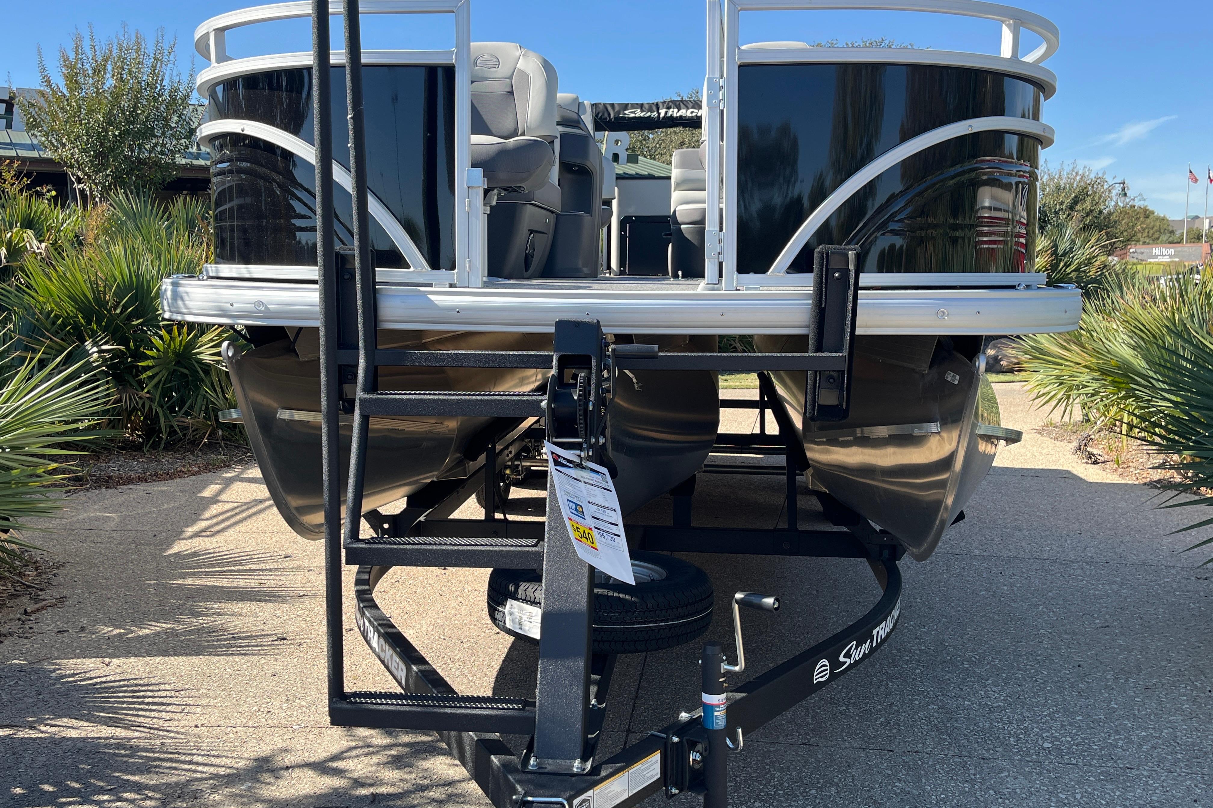 • 10' (3.05 m) Black SUN TRACKER® QuickLift™ Bimini top w/LED courtesy lights, storage pockets & protective boot