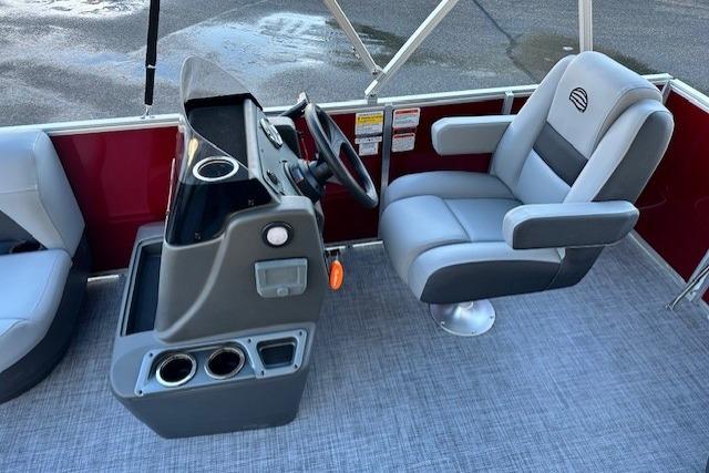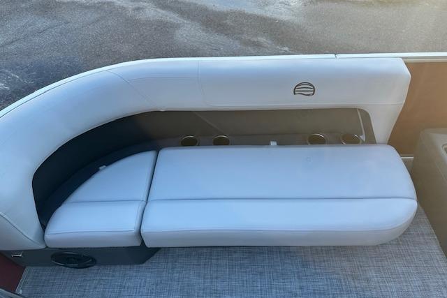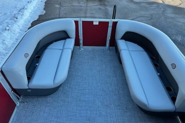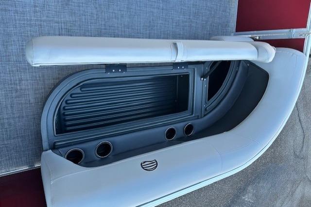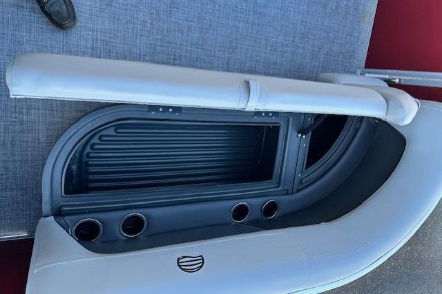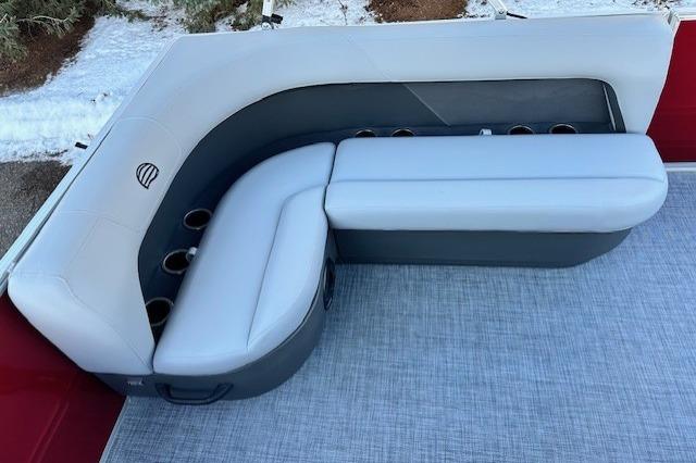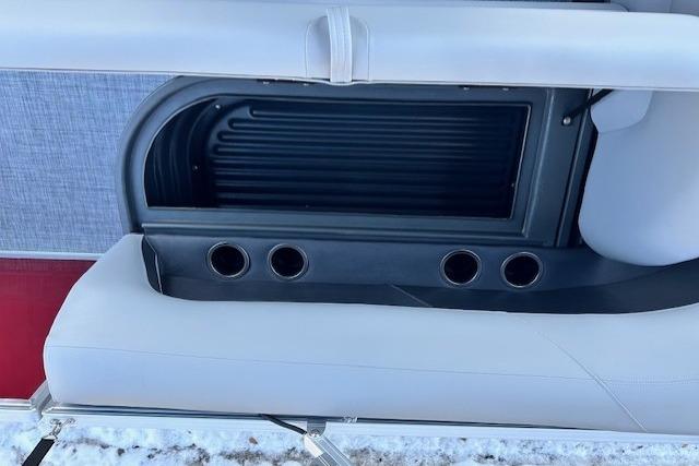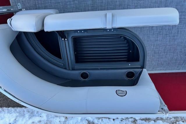 This year's PARTY BARGE gets some slick upgrades. Extra cupholders and storage built into the lounge backrests and improved handles make keeping your supplies at hand easier than ever. A new driver console design creates extra style. The boarding ladder has wider, more ergonomic steps. Crank up the soundtrack of the summer with the standard Bluetooth®-capable Wet Sounds™ stereo and pull up the 7' bimini top to party in the shade when the sun is high. Find your corner of the lake and relax in one of the three corner lounges.