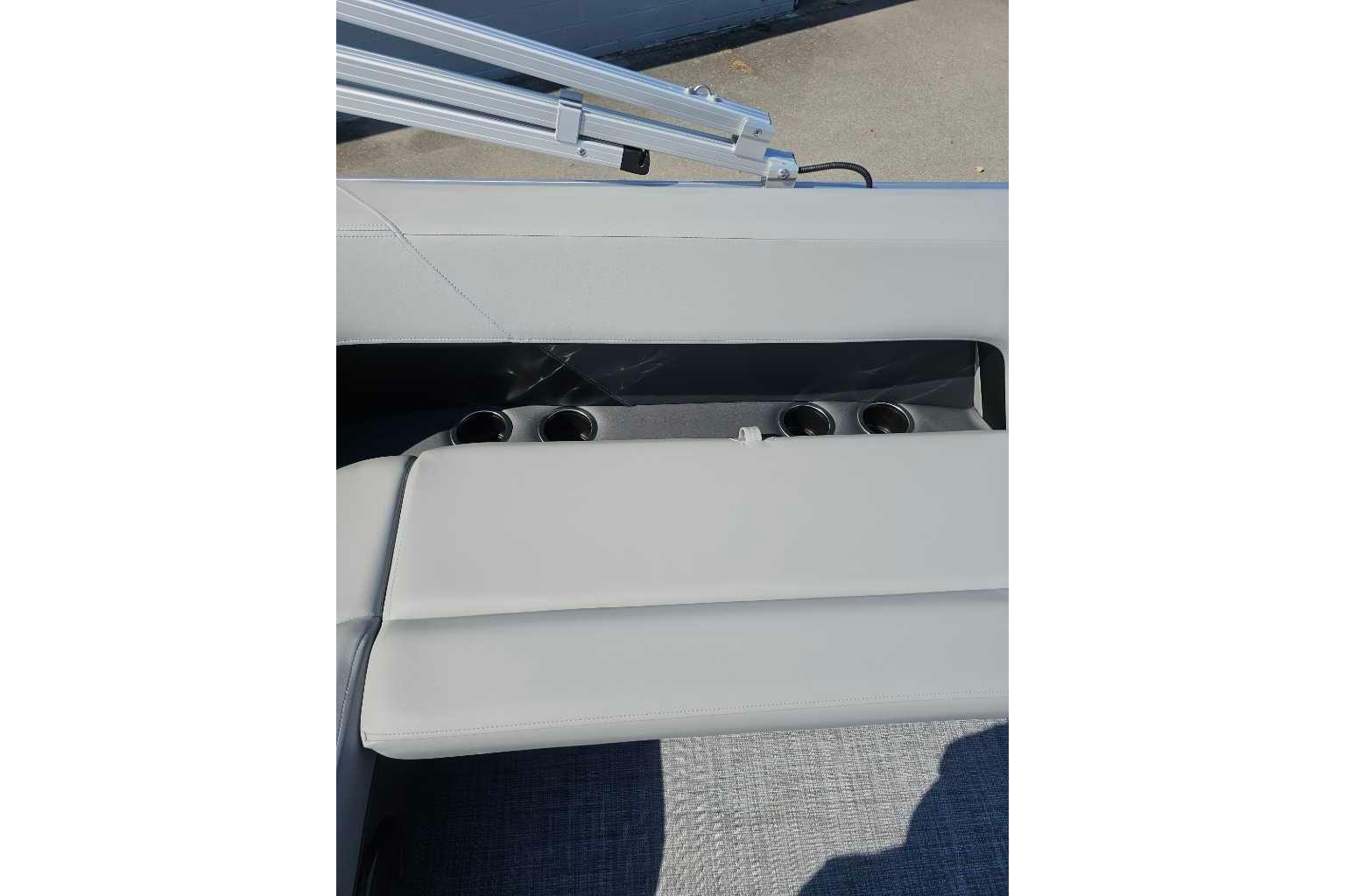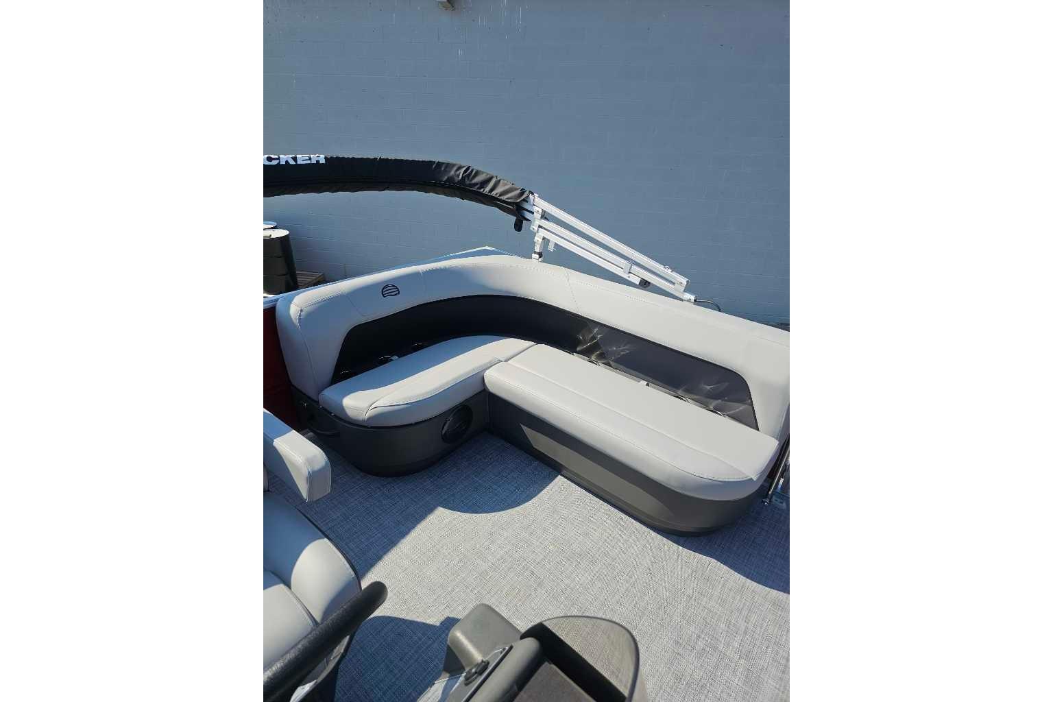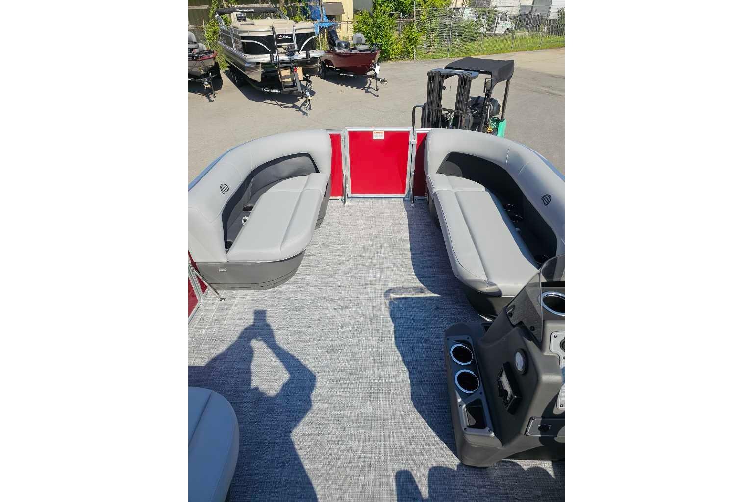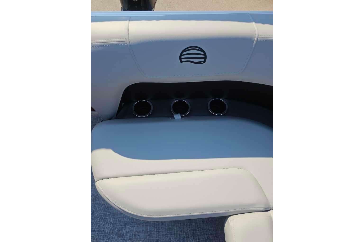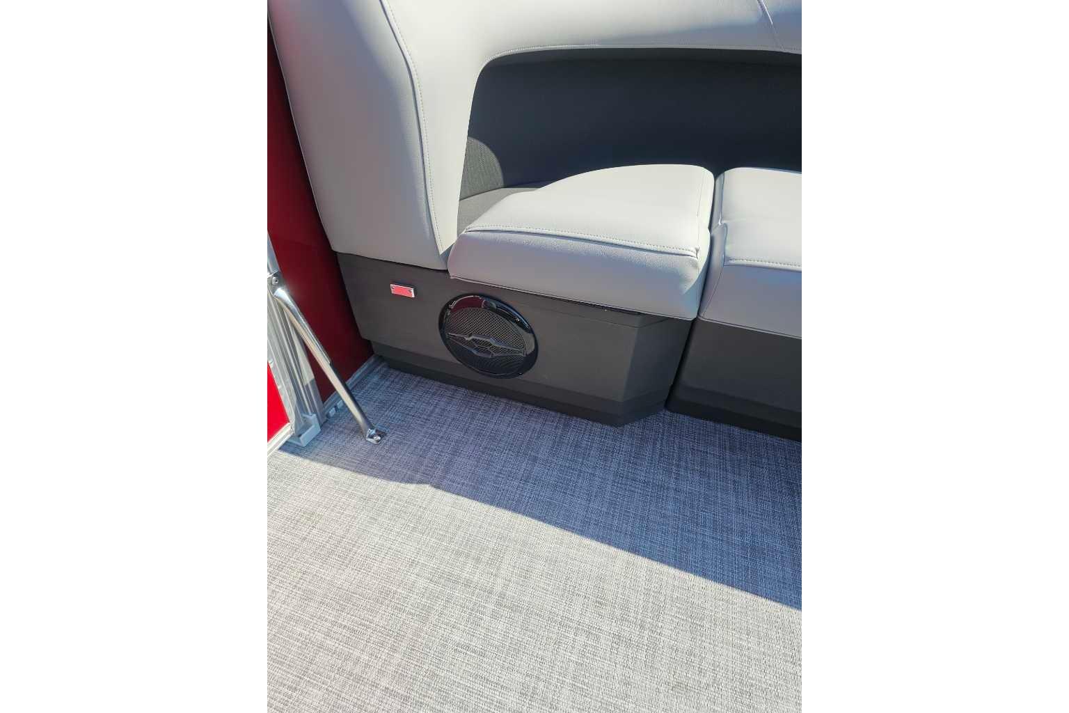 This year's PARTY BARGE gets some slick upgrades. Extra cupholders and storage built into the lounge backrests and improved handles make keeping your supplies at hand easier than ever. A new driver console design creates extra style. The boarding ladder has wider, more ergonomic steps. Crank up the soundtrack of the summer with the standard Bluetooth®-capable Wet Sounds™ stereo and pull up the 7' bimini top to party in the shade when the sun is high. Find your corner of the lake and relax in one of the three corner lounges.