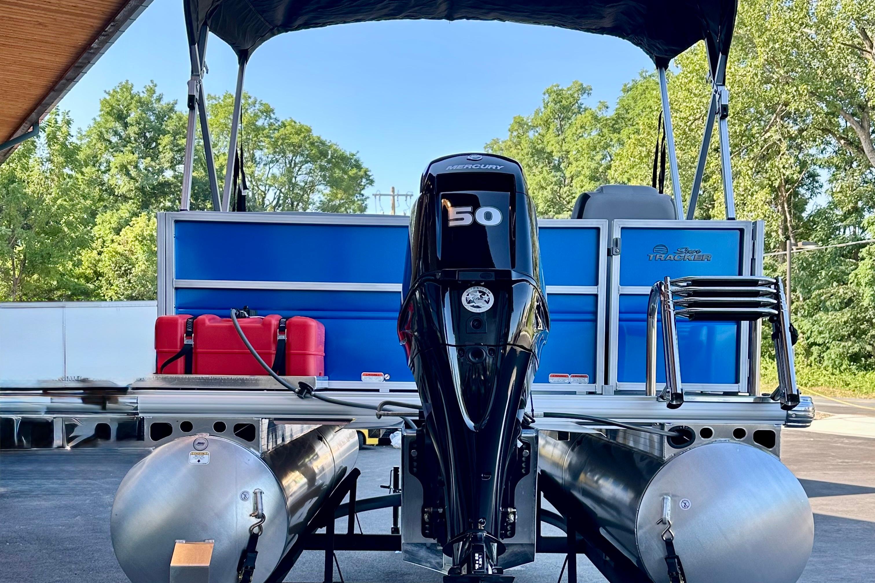 • 7' (2.13 m) Black polyester Bimini top w/easy-adjusting straps, trailering-position arms & protective boot