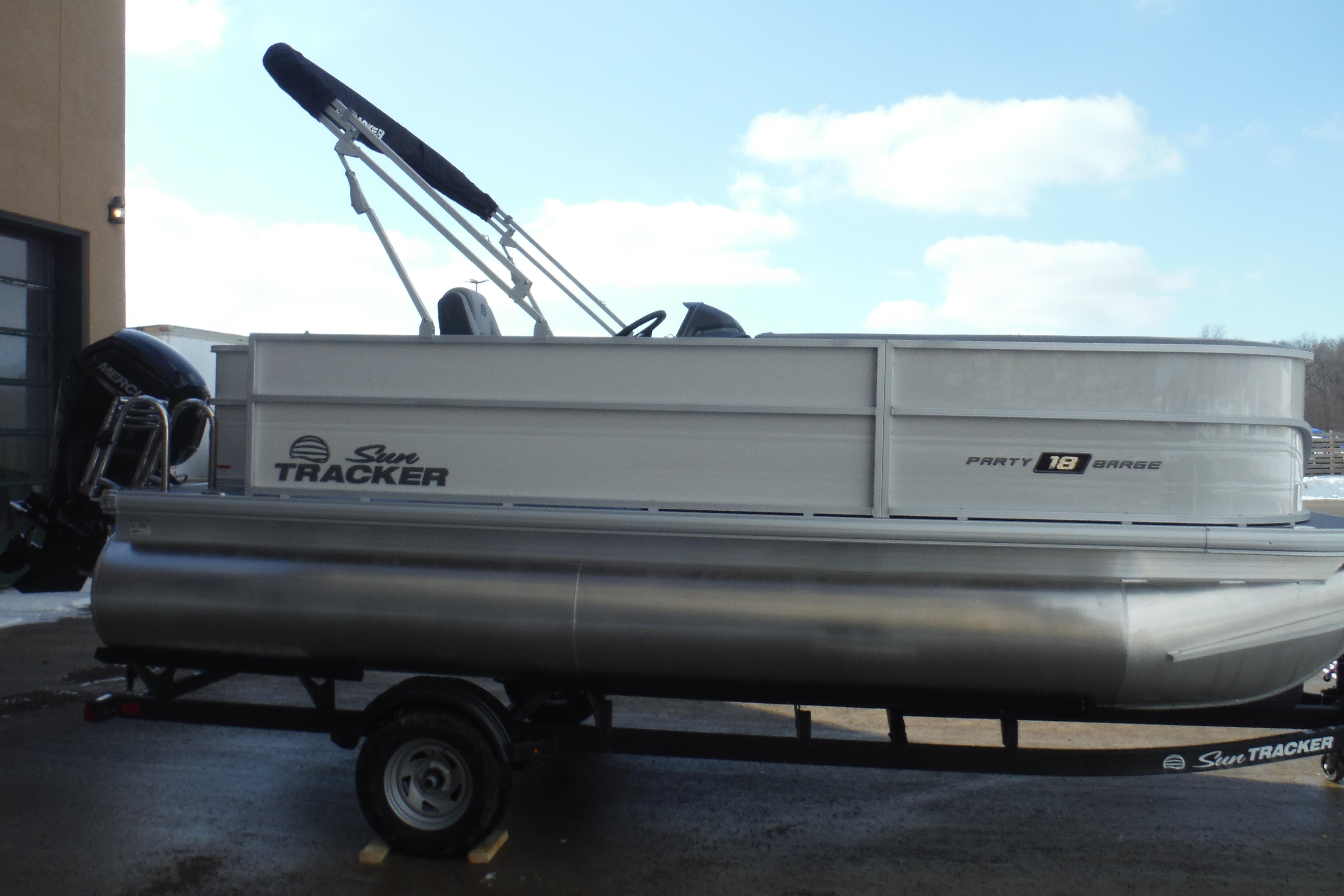 Bring on the fun with the 2026 SUN TRACKER® PARTY BARGE® 18 DLX! This lake-ready pontoon fits up to nine passengers and keeps them entertained all weekend long.