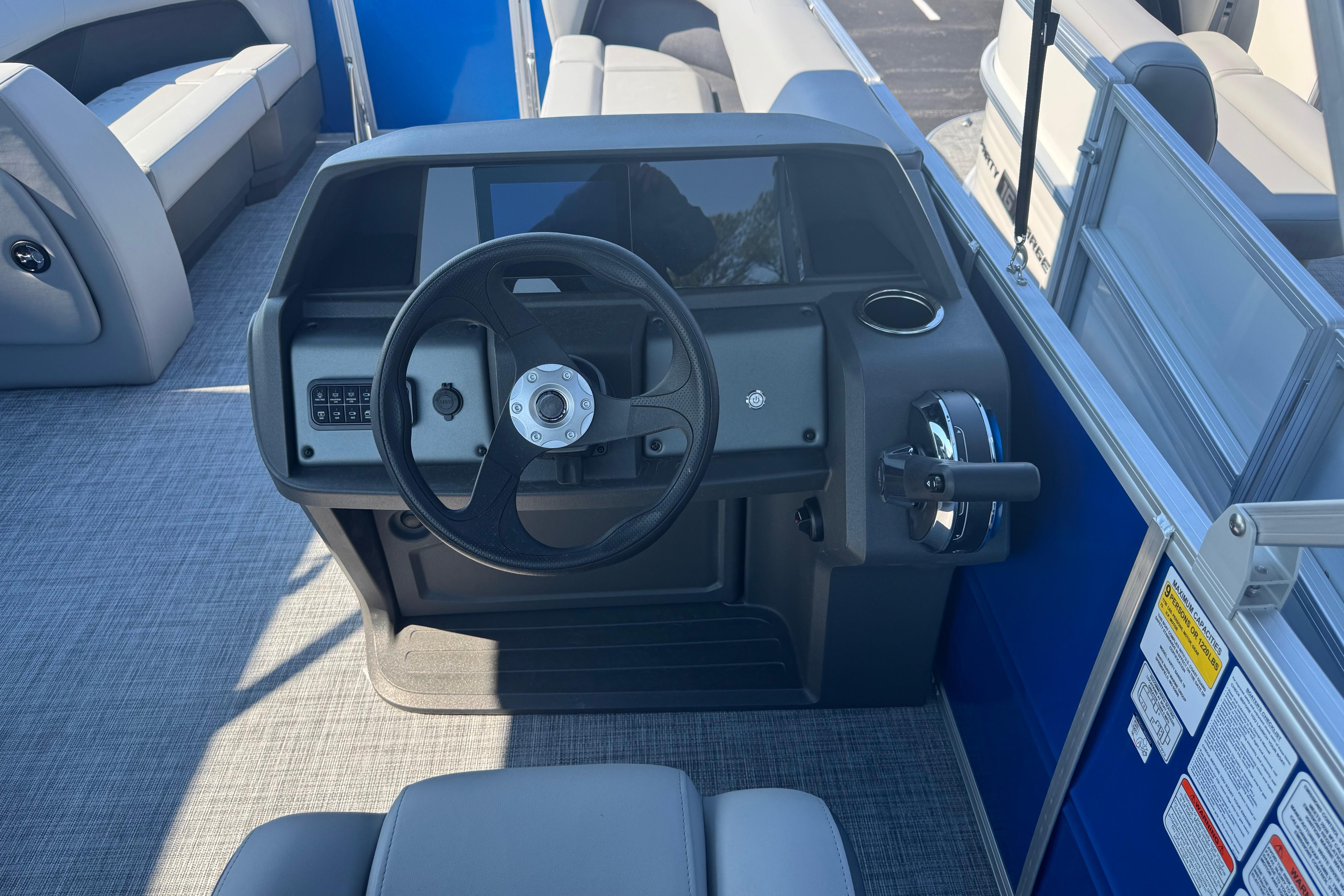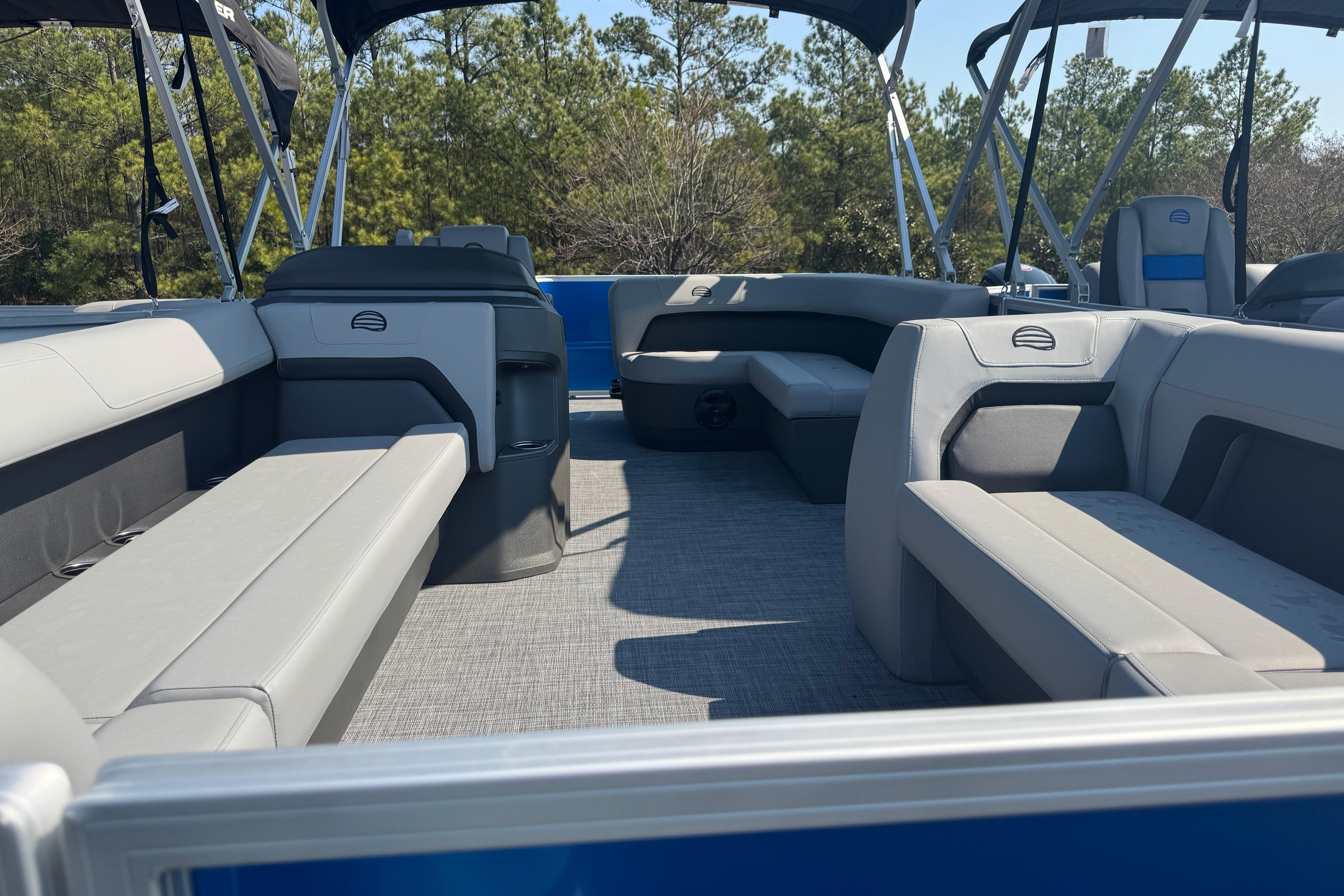 • 9' (2.74 m) Black Bimini top w/LED courtesy lights, storage pockets, protective boot & accepts optional drop-down changing curtain