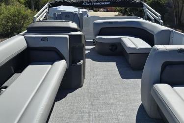 Bring on the fun with the 2026 SUN TRACKER® PARTY BARGE® 18 DLX! This lake-ready pontoon fits up to nine passengers and keeps them entertained all weekend long.