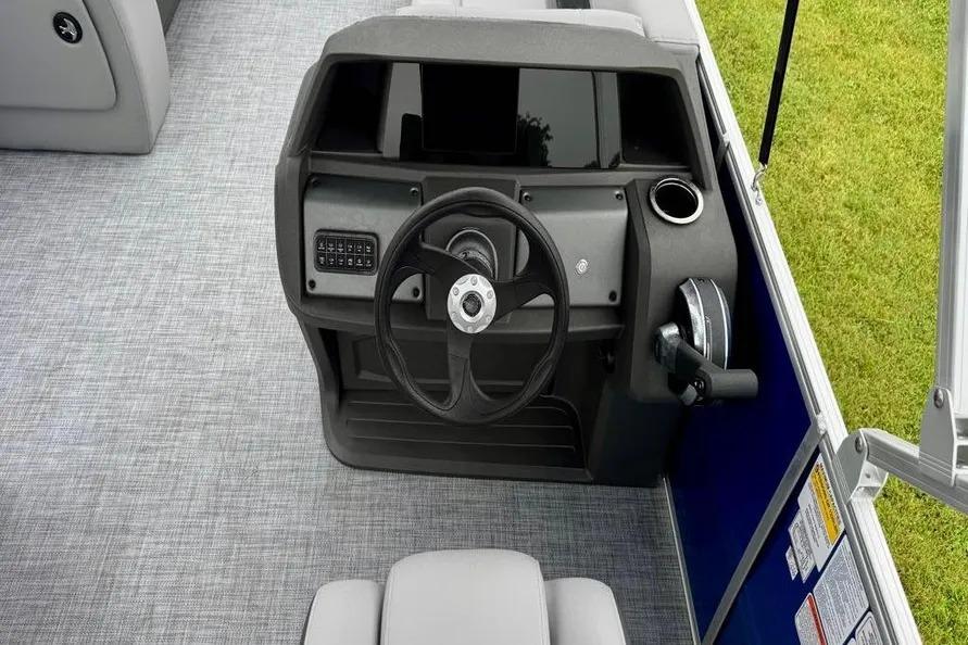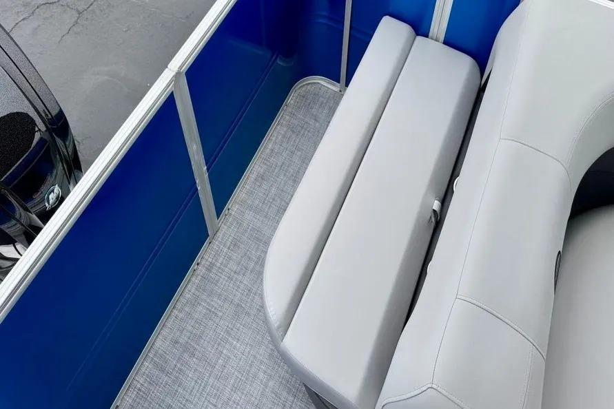 The 2026 model year brings some exciting changes to the 18 DLX. The lounge now features open storage compartments with extra cupholders built into the backrest. This ingenious use of space adds more than six cubic feet of extra storage space to the boat. The captain also gets a new console design with all the stops. The 17' 8" deck gives your crew three lounges and a rear-facing bench to relax in. Each lounge sports hidden compartments that secure all your supplies. The rear boarding platform features a new, wider telescoping boarding ladder with grab rails.