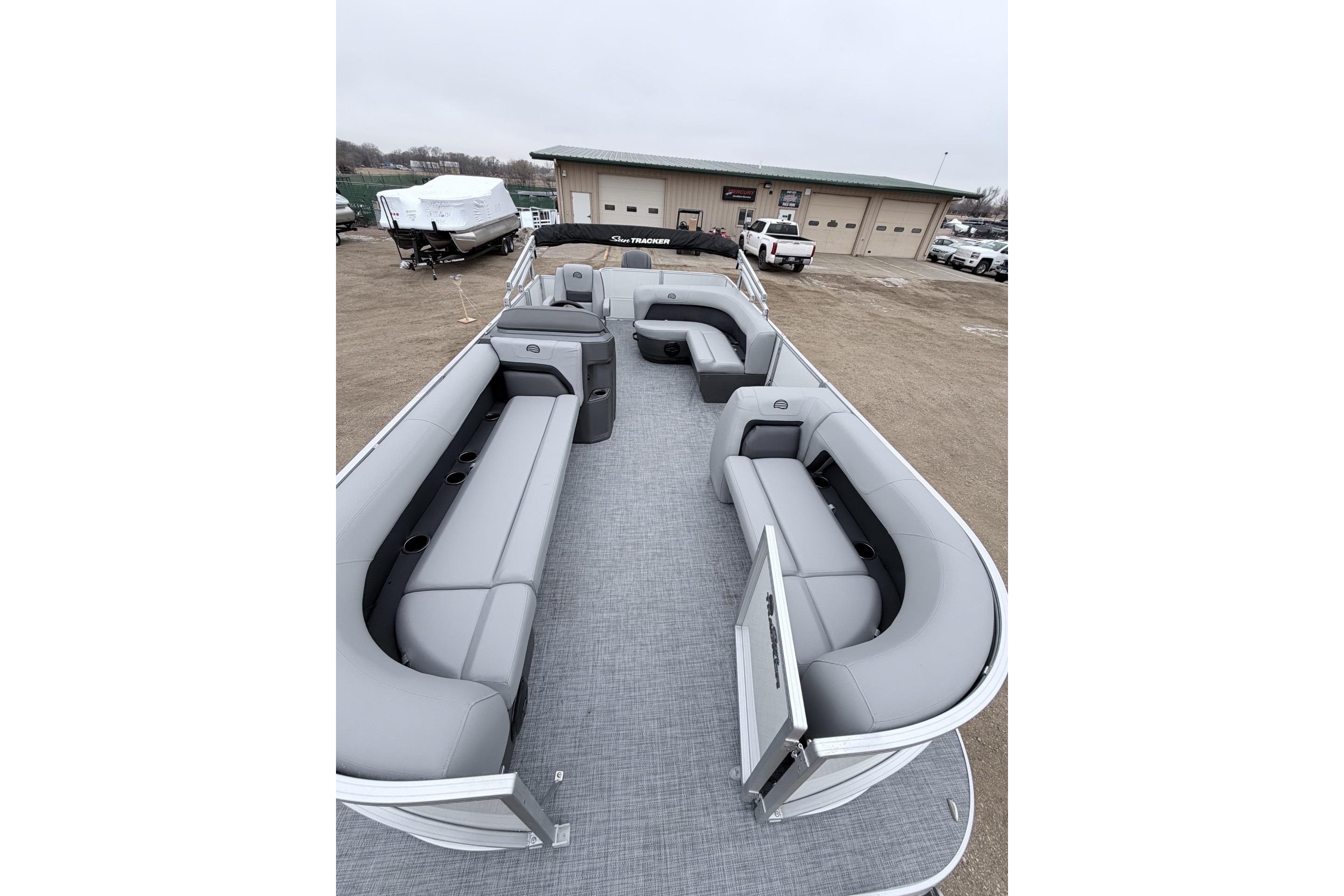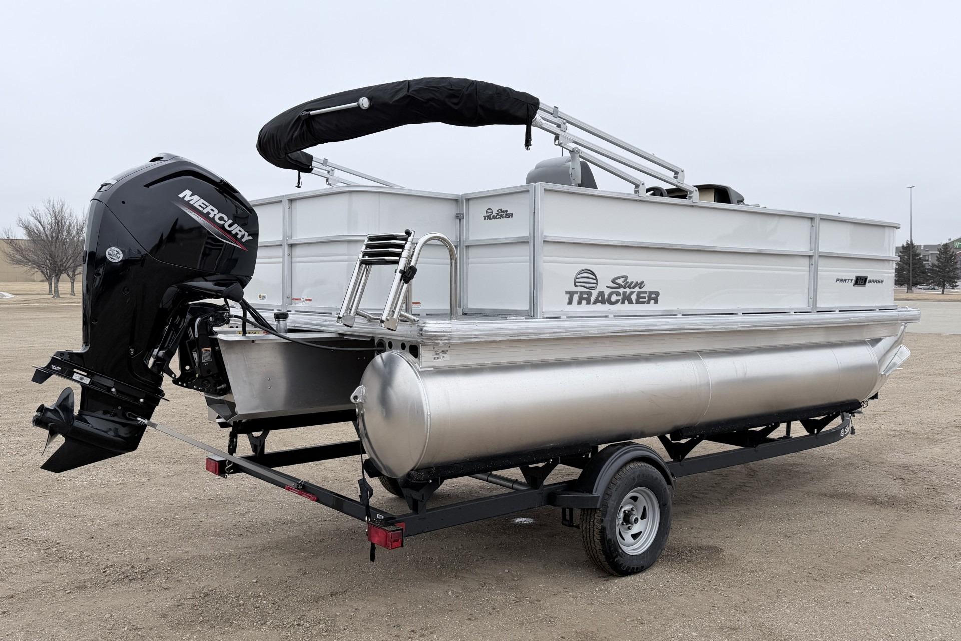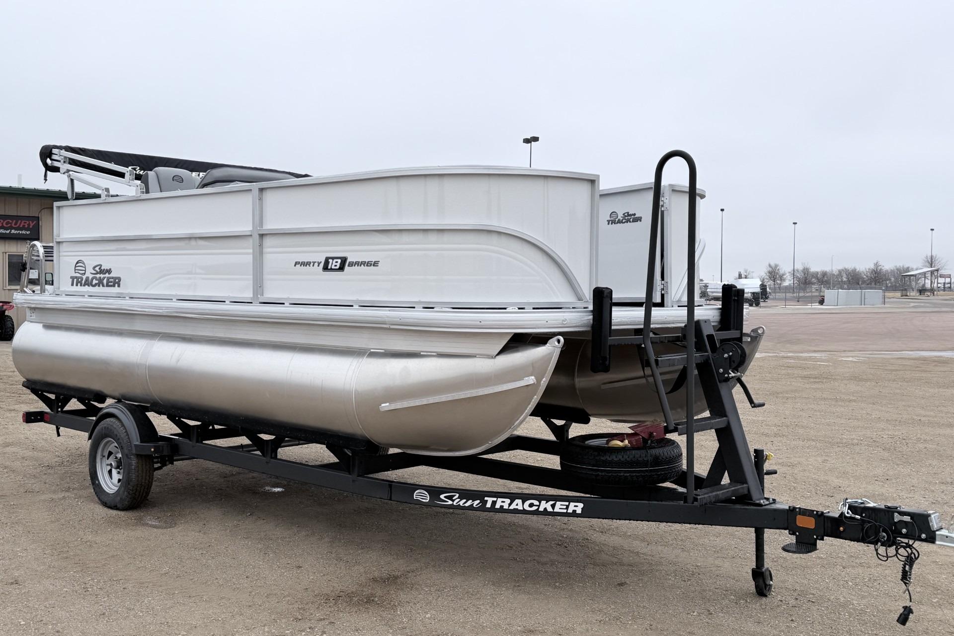Bring on the fun with the 2026 SUN TRACKER® PARTY BARGE® 18 DLX! This lake-ready pontoon fits up to nine passengers and keeps them entertained all weekend long.