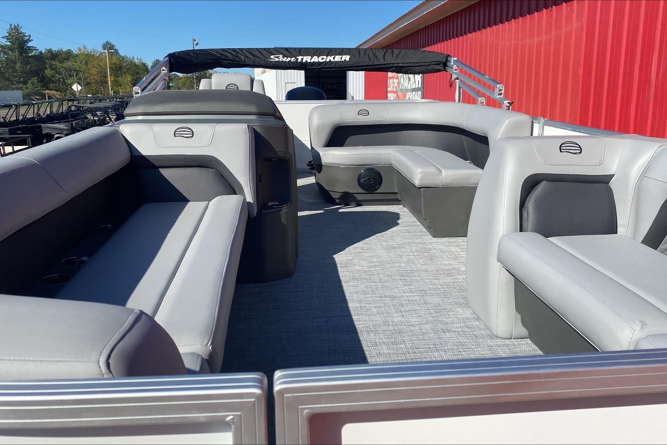 Bring on the fun with the 2026 SUN TRACKER® PARTY BARGE® 18 DLX! This lake-ready pontoon fits up to nine passengers and keeps them entertained all weekend long.