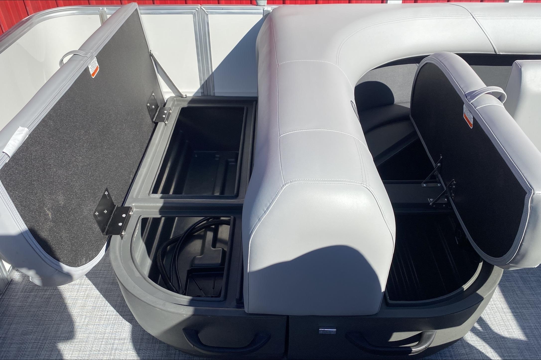 The 2026 model year brings some exciting changes to the 18 DLX. The lounge now features open storage compartments with extra cupholders built into the backrest. This ingenious use of space adds more than six cubic feet of extra storage space to the boat. The captain also gets a new console design with all the stops. The 17' 8" deck gives your crew three lounges and a rear-facing bench to relax in. Each lounge sports hidden compartments that secure all your supplies. The rear boarding platform features a new, wider telescoping boarding ladder with grab rails.