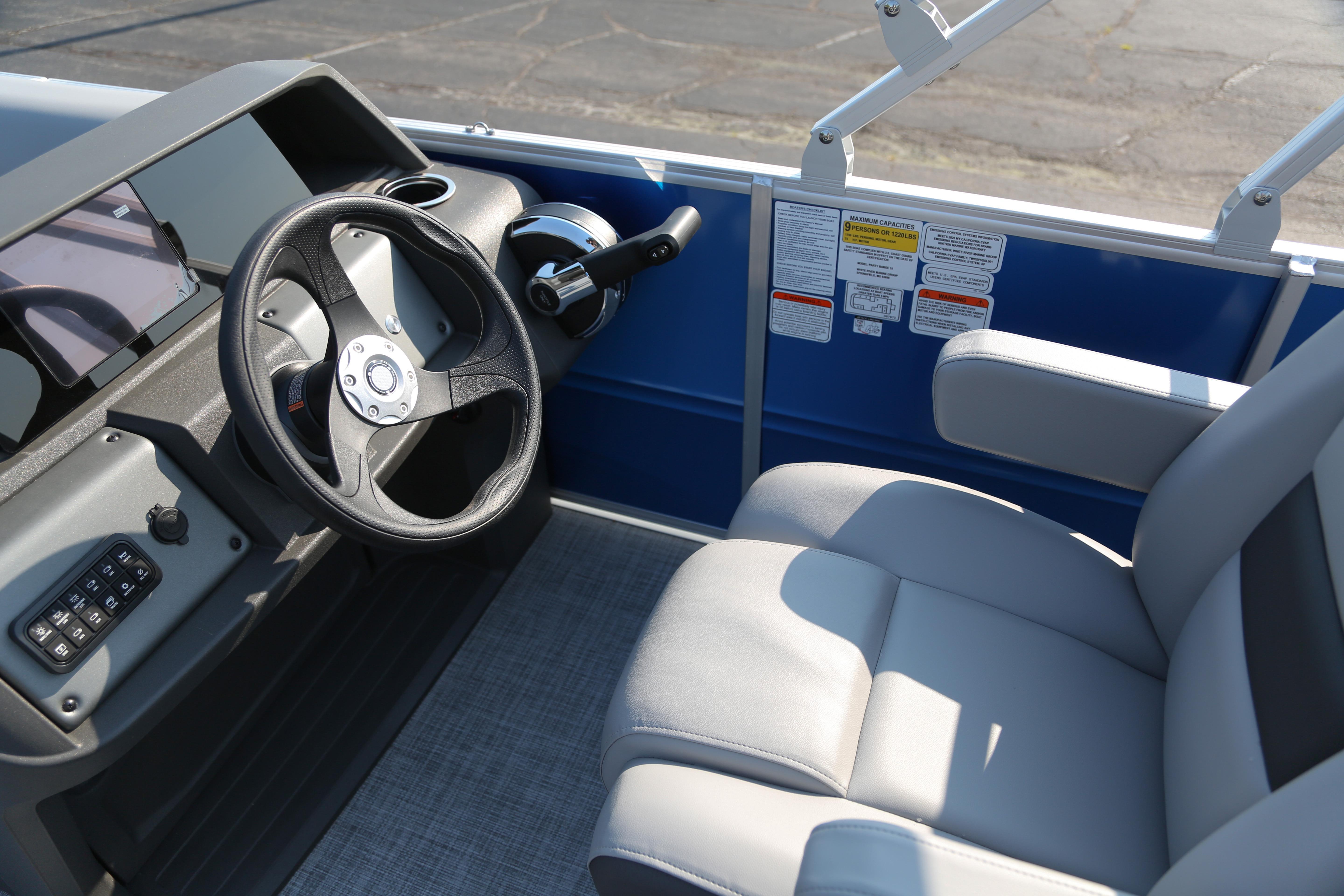 The 2026 model year brings some exciting changes to the 18 DLX. The lounge now features open storage compartments with extra cupholders built into the backrest. This ingenious use of space adds more than six cubic feet of extra storage space to the boat. The captain also gets a new console design with all the stops. The 17' 8" deck gives your crew three lounges and a rear-facing bench to relax in. Each lounge sports hidden compartments that secure all your supplies. The rear boarding platform features a new, wider telescoping boarding ladder with grab rails.