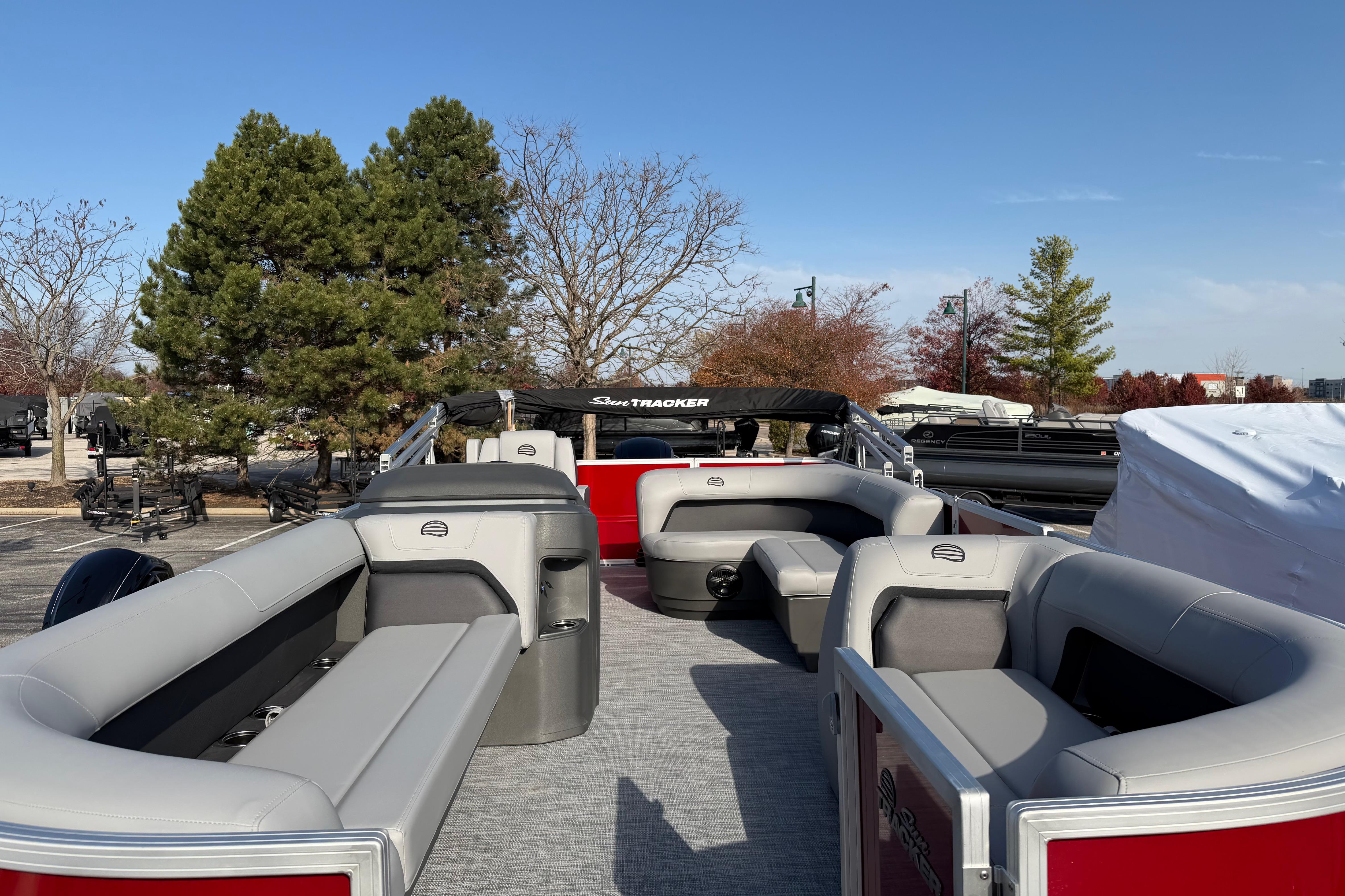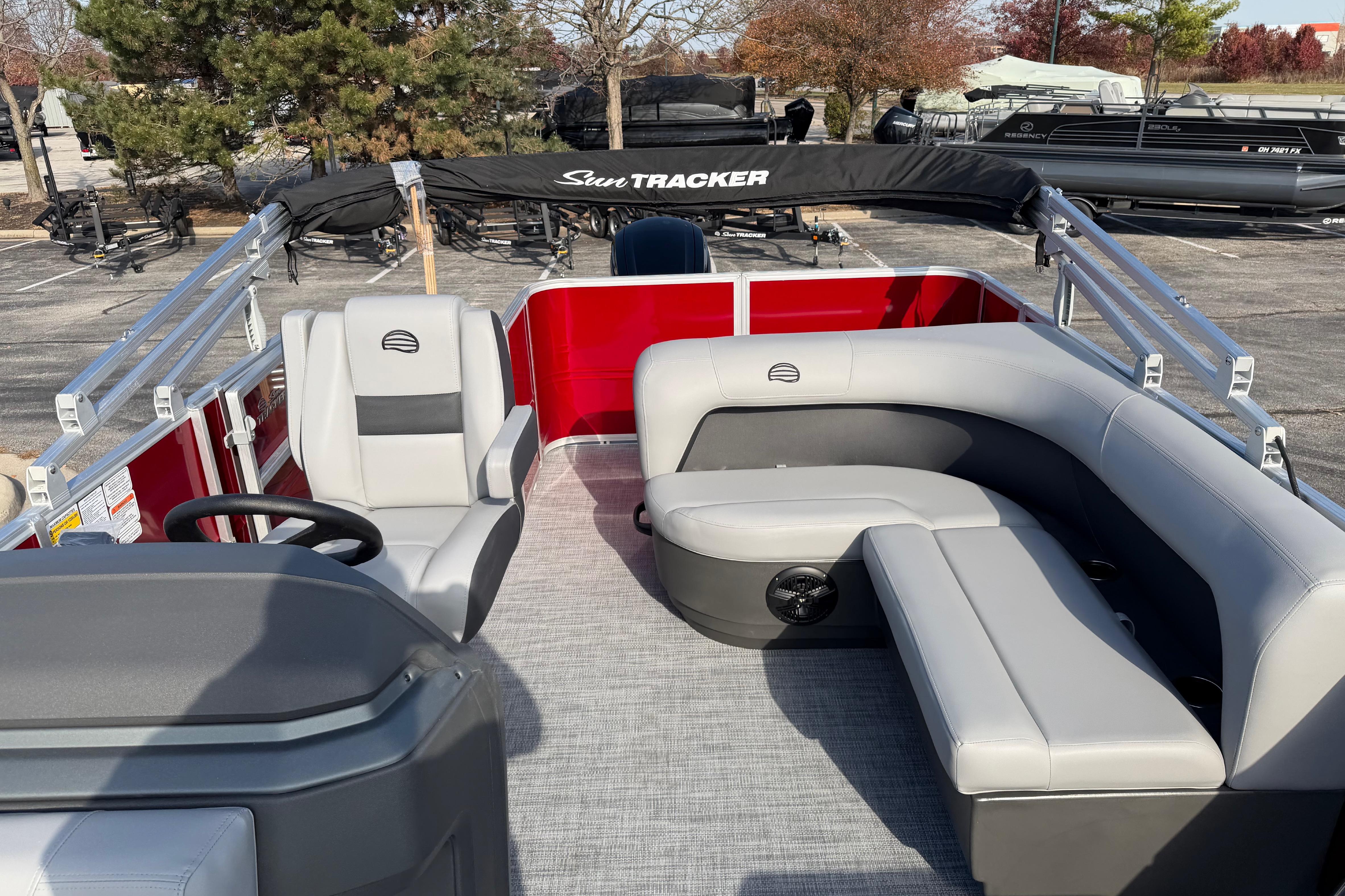 Bring on the fun with the 2026 SUN TRACKER® PARTY BARGE® 18 DLX! This lake-ready pontoon fits up to nine passengers and keeps them entertained all weekend long.