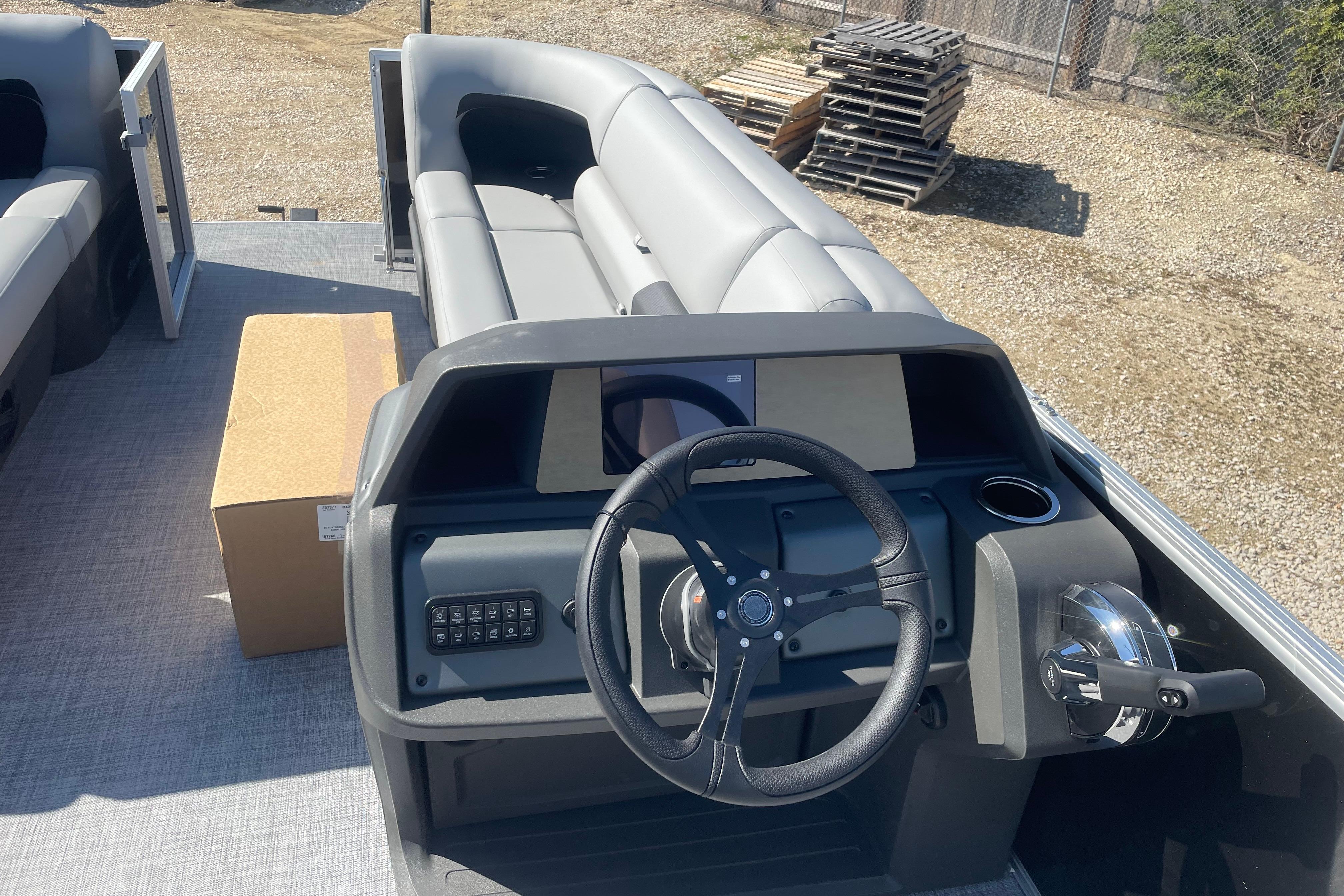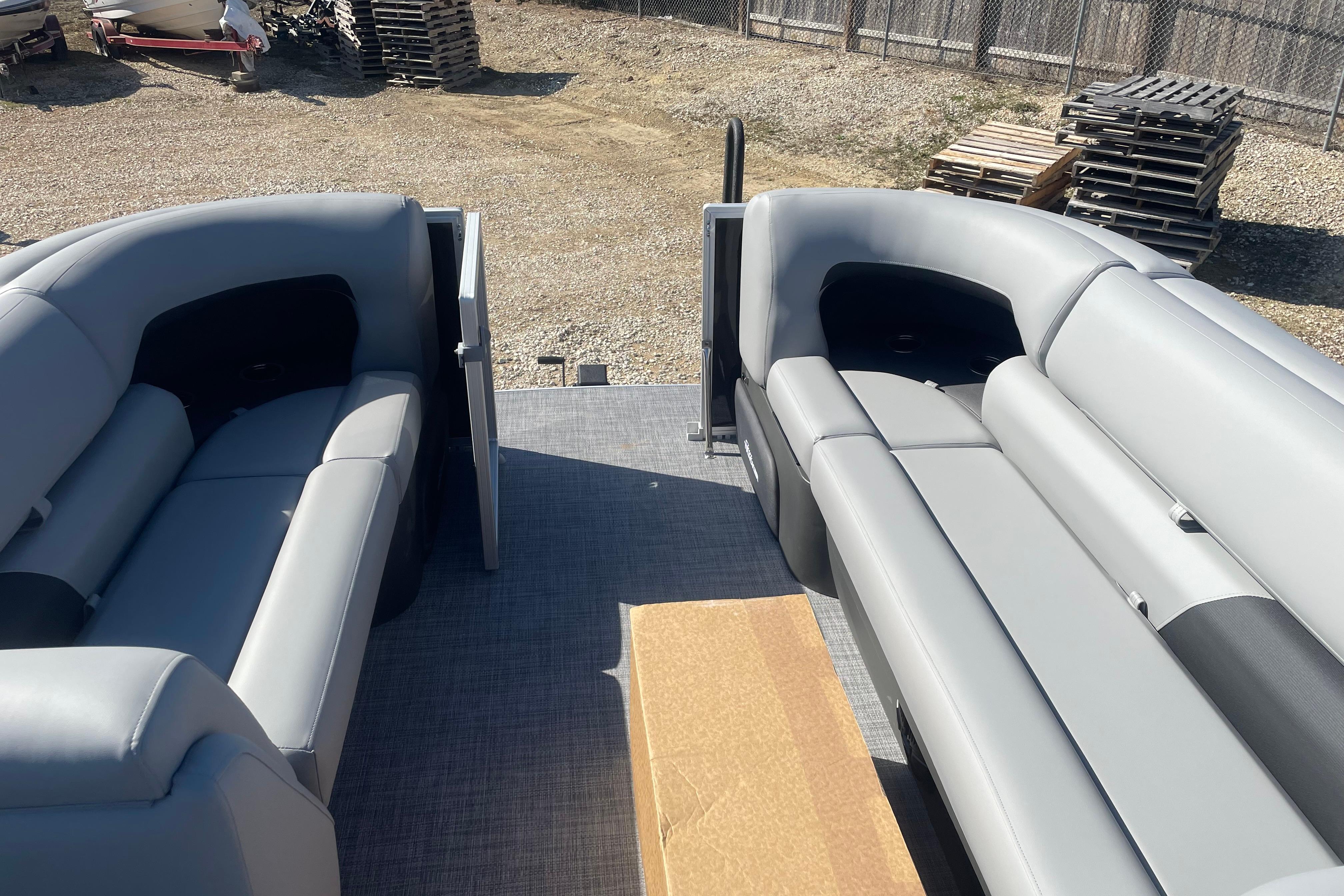 Some exciting new changes come with the 2026 model! The captain's console has received a complete facelift. The three corner lounges give your passengers plenty of space to relax in. These lounges have new accents that match the fence colors and also sport great new corner storage cubbies with more cupholders. Lift those pillow-top seats to reveal hidden storage compartments.