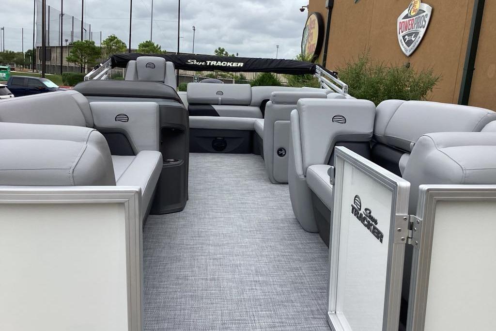 Some exciting new changes come with the 2026 model! The captain's console has received a complete facelift. The three corner lounges give your passengers plenty of space to relax in. These lounges have new accents that match the fence colors and also sport great new corner storage cubbies with more cupholders. Lift those pillow-top seats to reveal hidden storage compartments.
