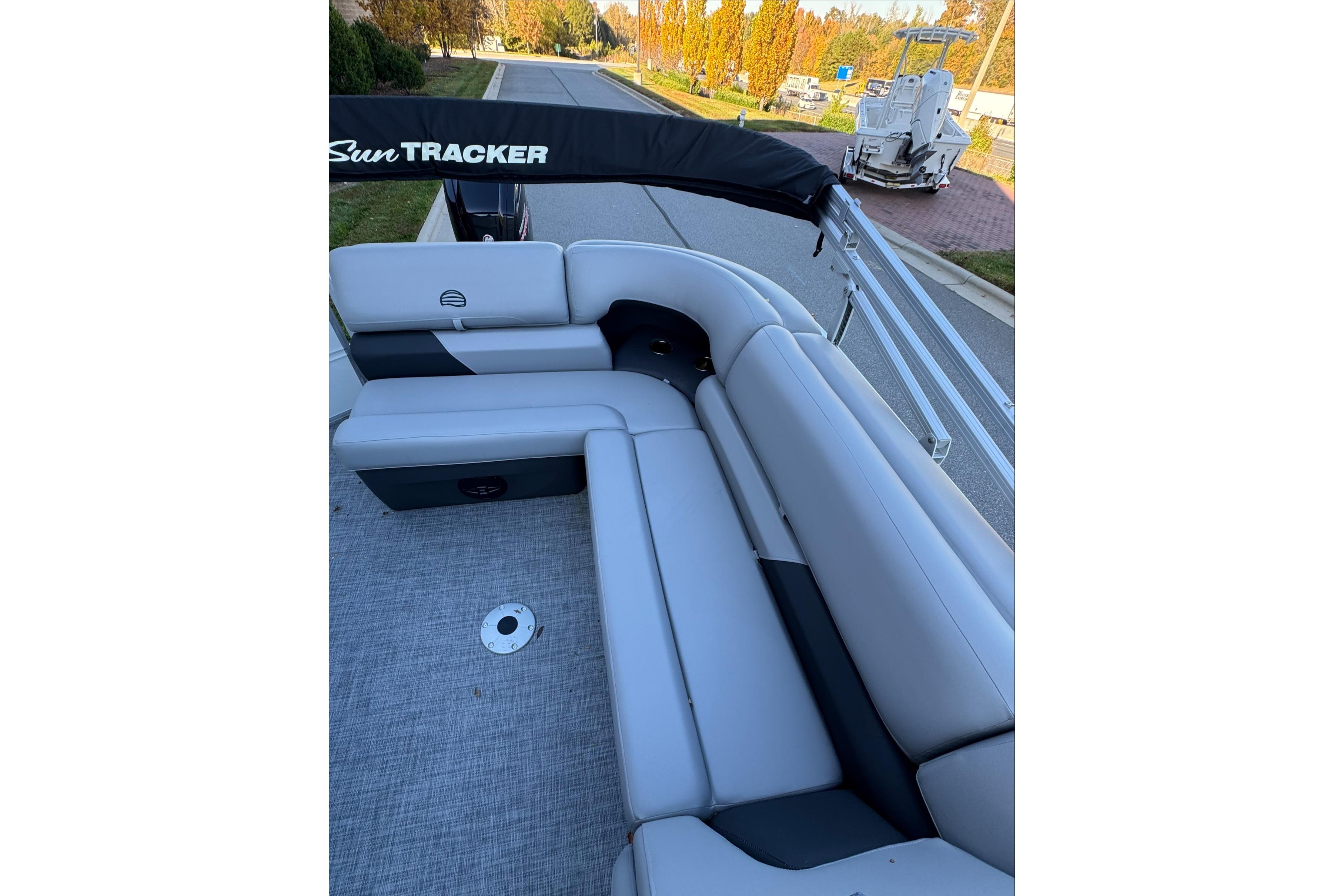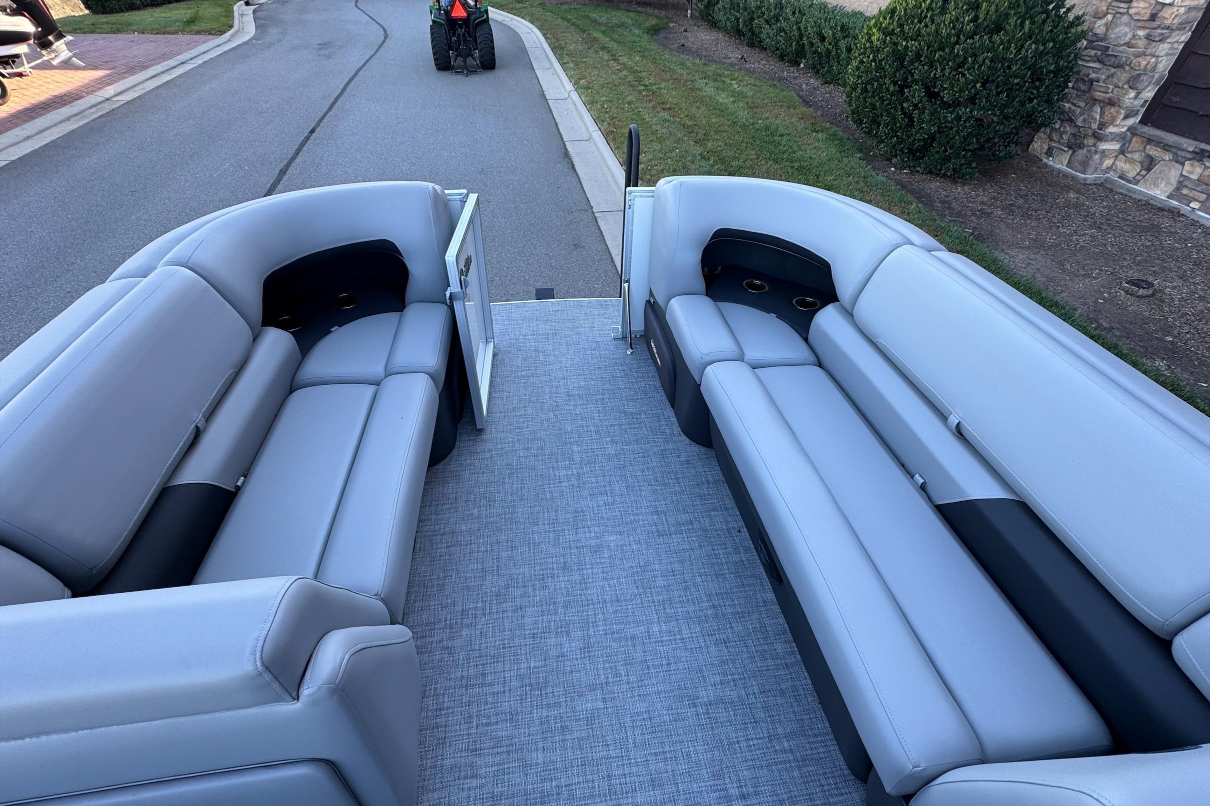 Some exciting new changes come with the 2026 model! The captain's console has received a complete facelift. The three corner lounges give your passengers plenty of space to relax in. These lounges have new accents that match the fence colors and also sport great new corner storage cubbies with more cupholders. Lift those pillow-top seats to reveal hidden storage compartments.