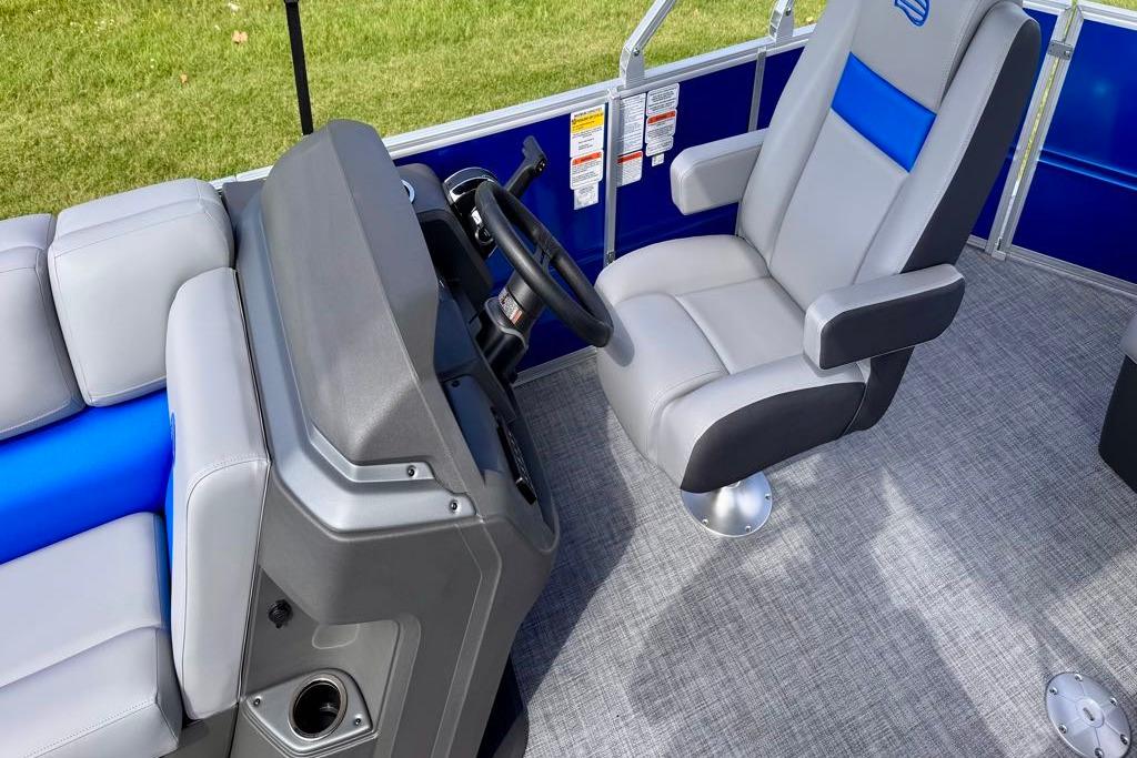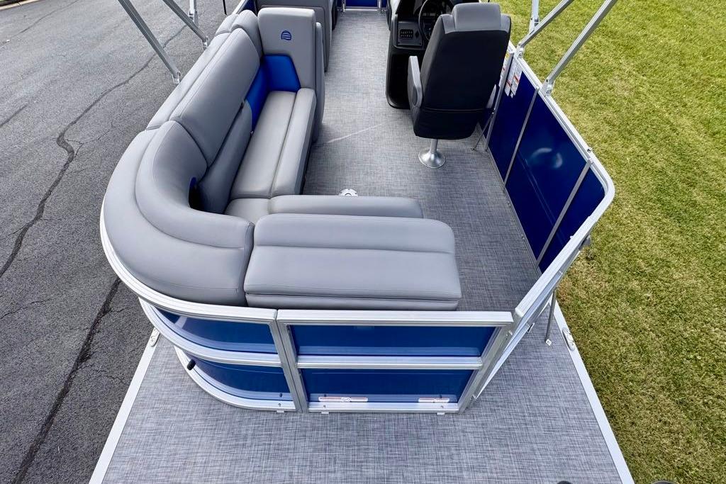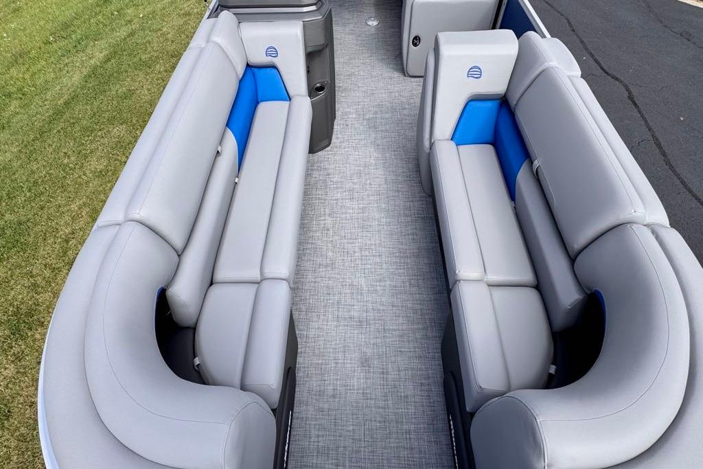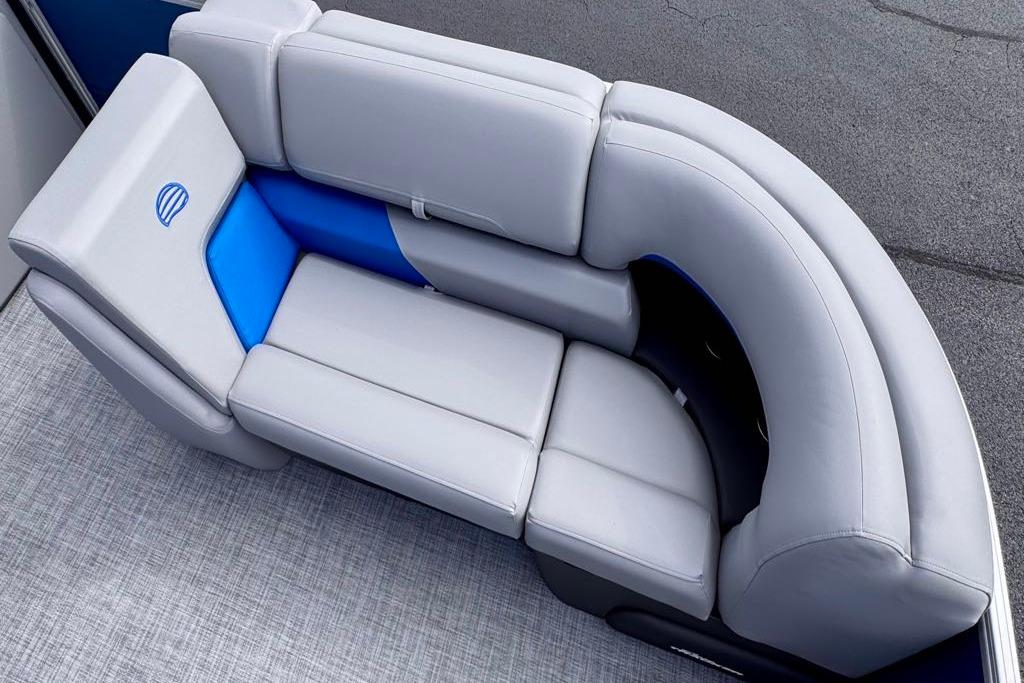 Some exciting new changes come with the 2026 model! The captain's console has received a complete facelift. The three corner lounges give your passengers plenty of space to relax in. These lounges have new accents that match the fence colors and also sport great new corner storage cubbies with more cupholders. Lift those pillow-top seats to reveal hidden storage compartments.