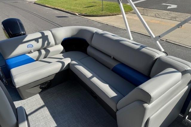 Some exciting new changes come with the 2026 model! The captain's console has received a complete facelift. The three corner lounges give your passengers plenty of space to relax in. These lounges have new accents that match the fence colors and also sport great new corner storage cubbies with more cupholders. Lift those pillow-top seats to reveal hidden storage compartments.