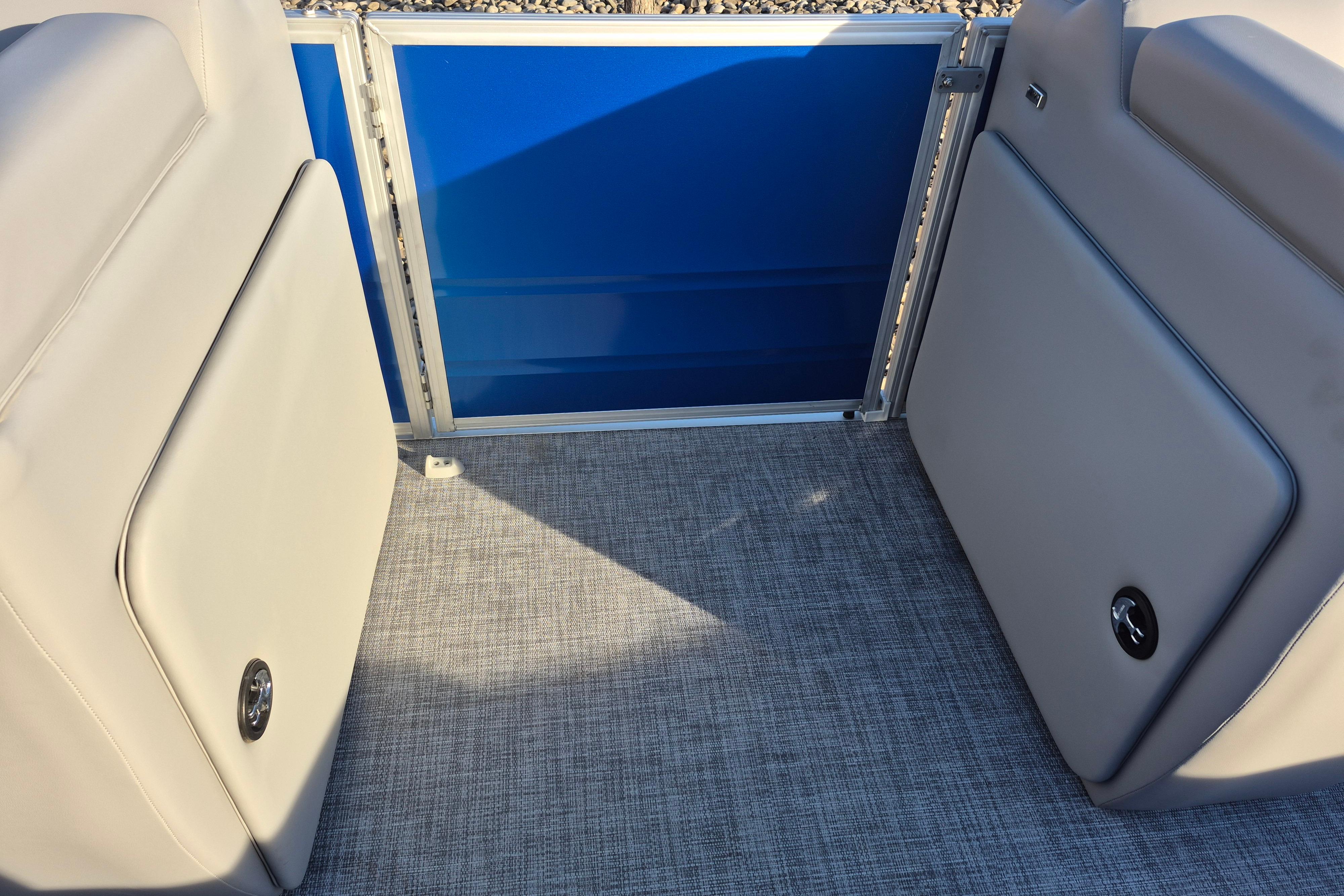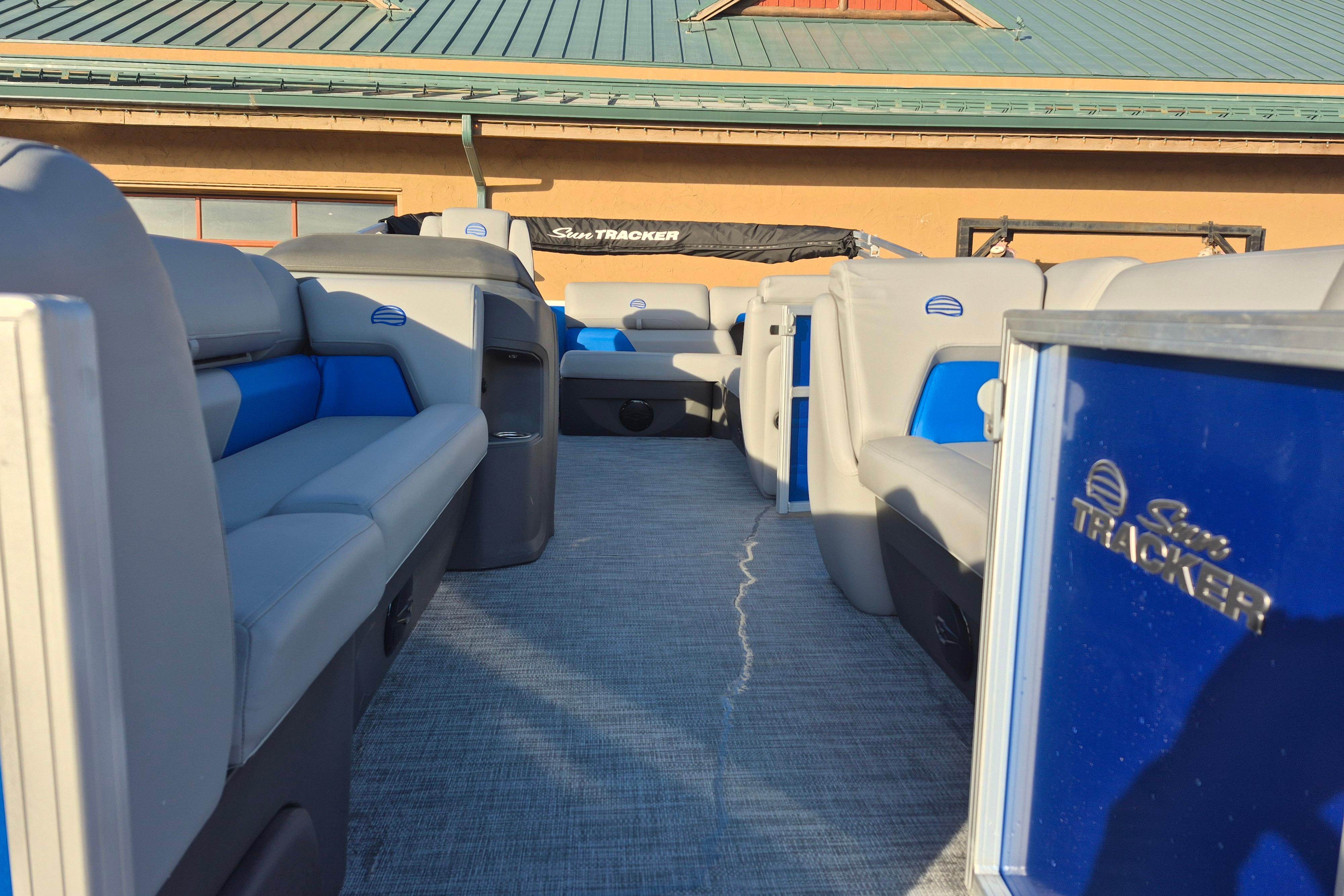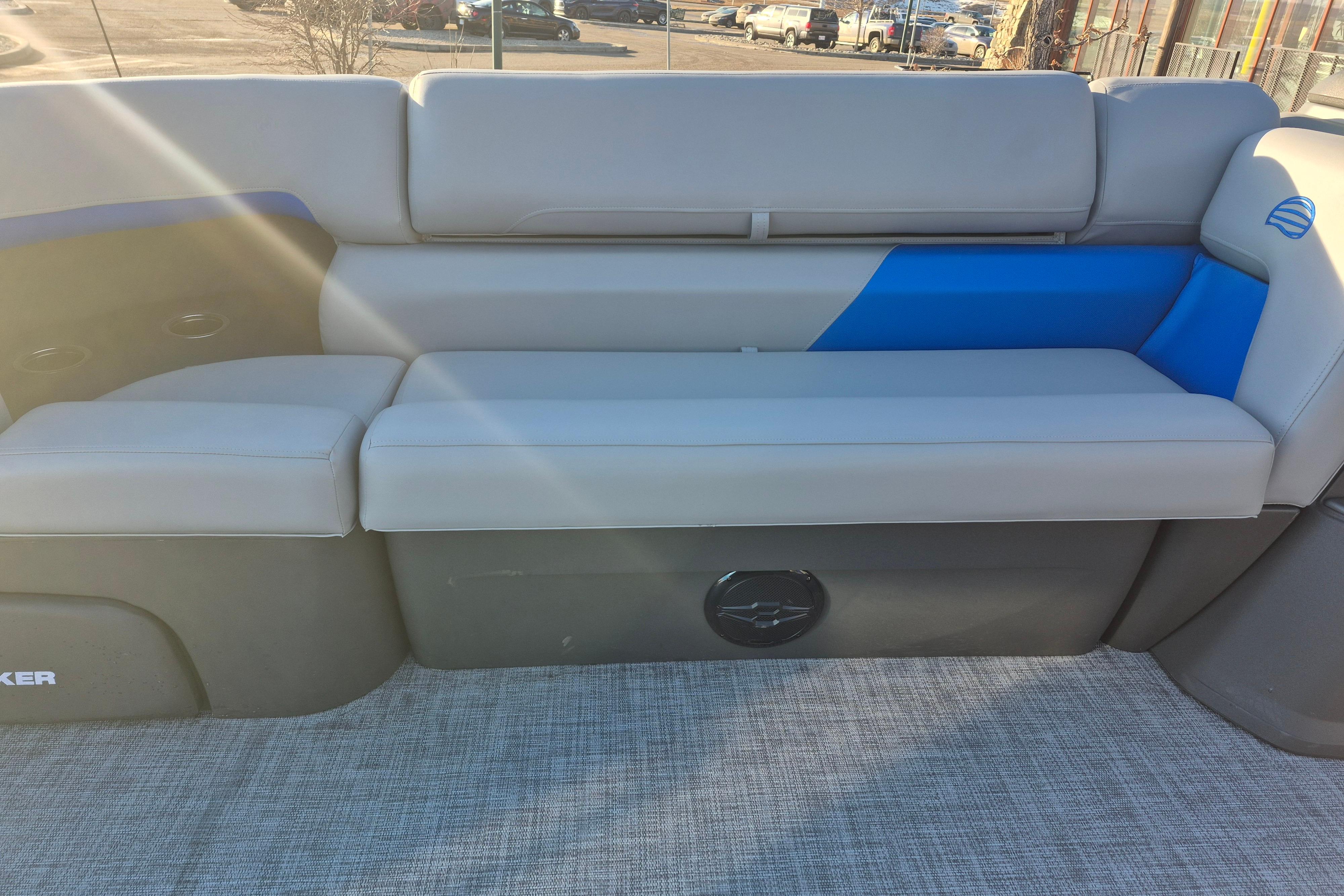 Some exciting new changes come with the 2026 model! The captain's console has received a complete facelift. The three corner lounges give your passengers plenty of space to relax in. These lounges have new accents that match the fence colors and also sport great new corner storage cubbies with more cupholders. Lift those pillow-top seats to reveal hidden storage compartments.
