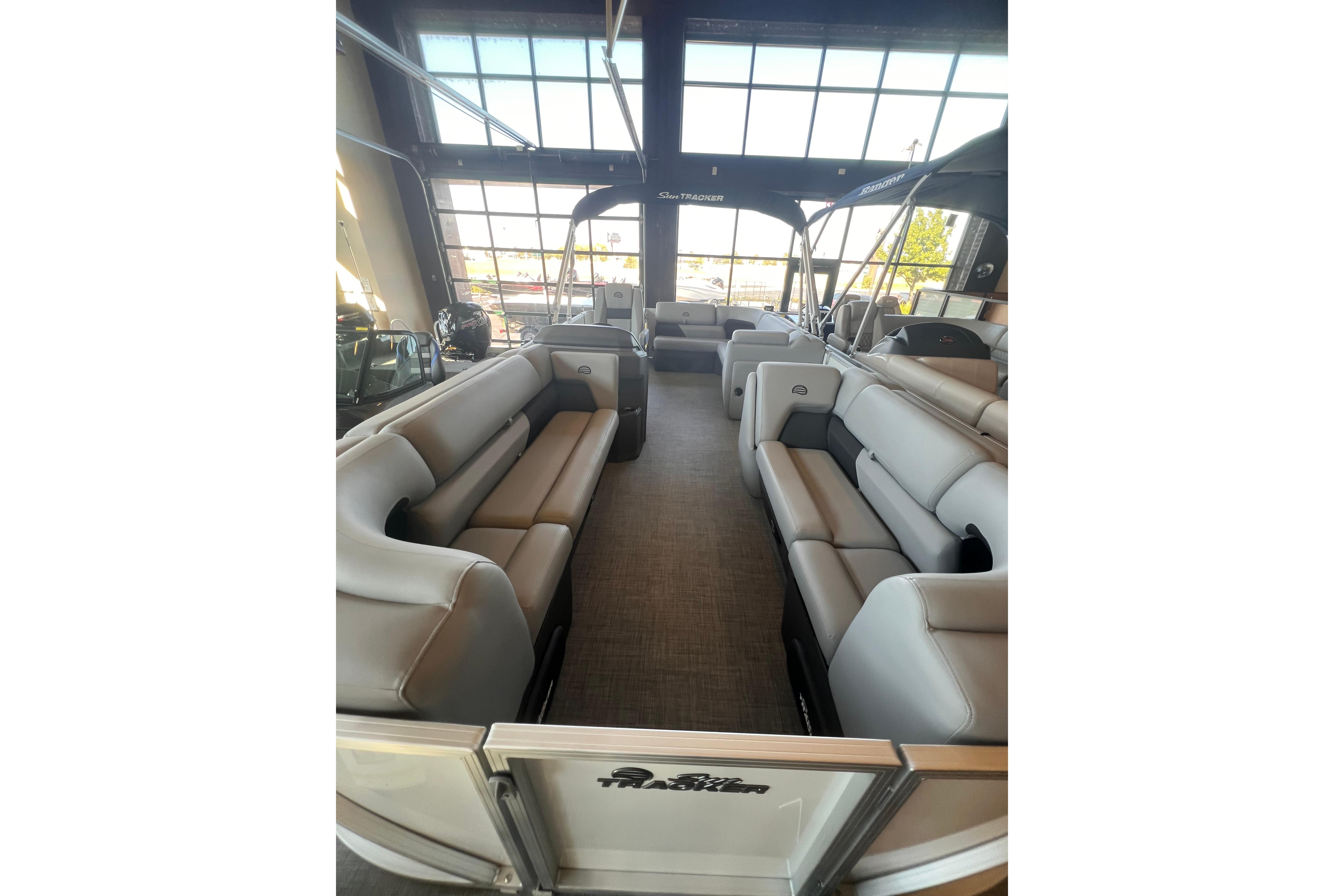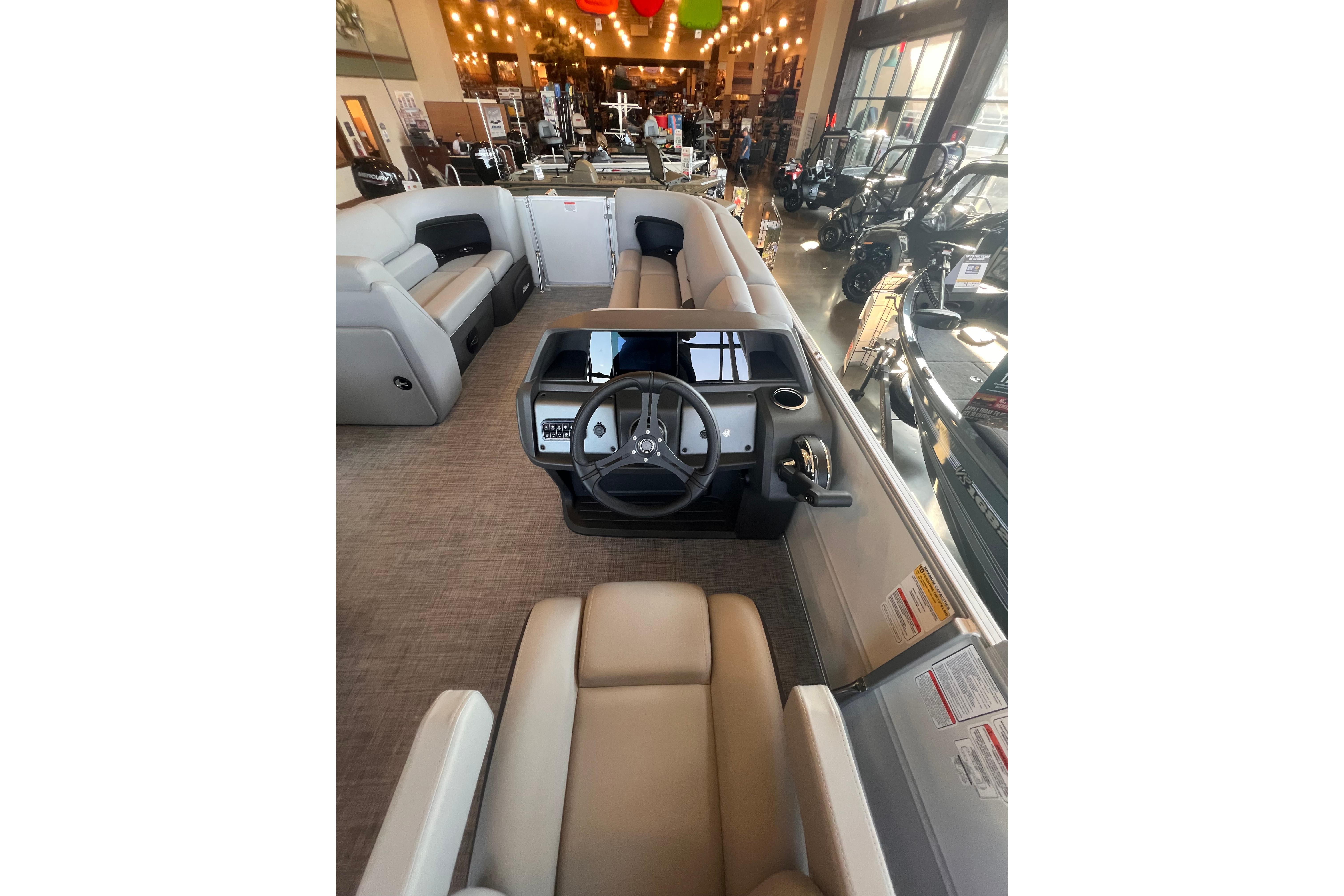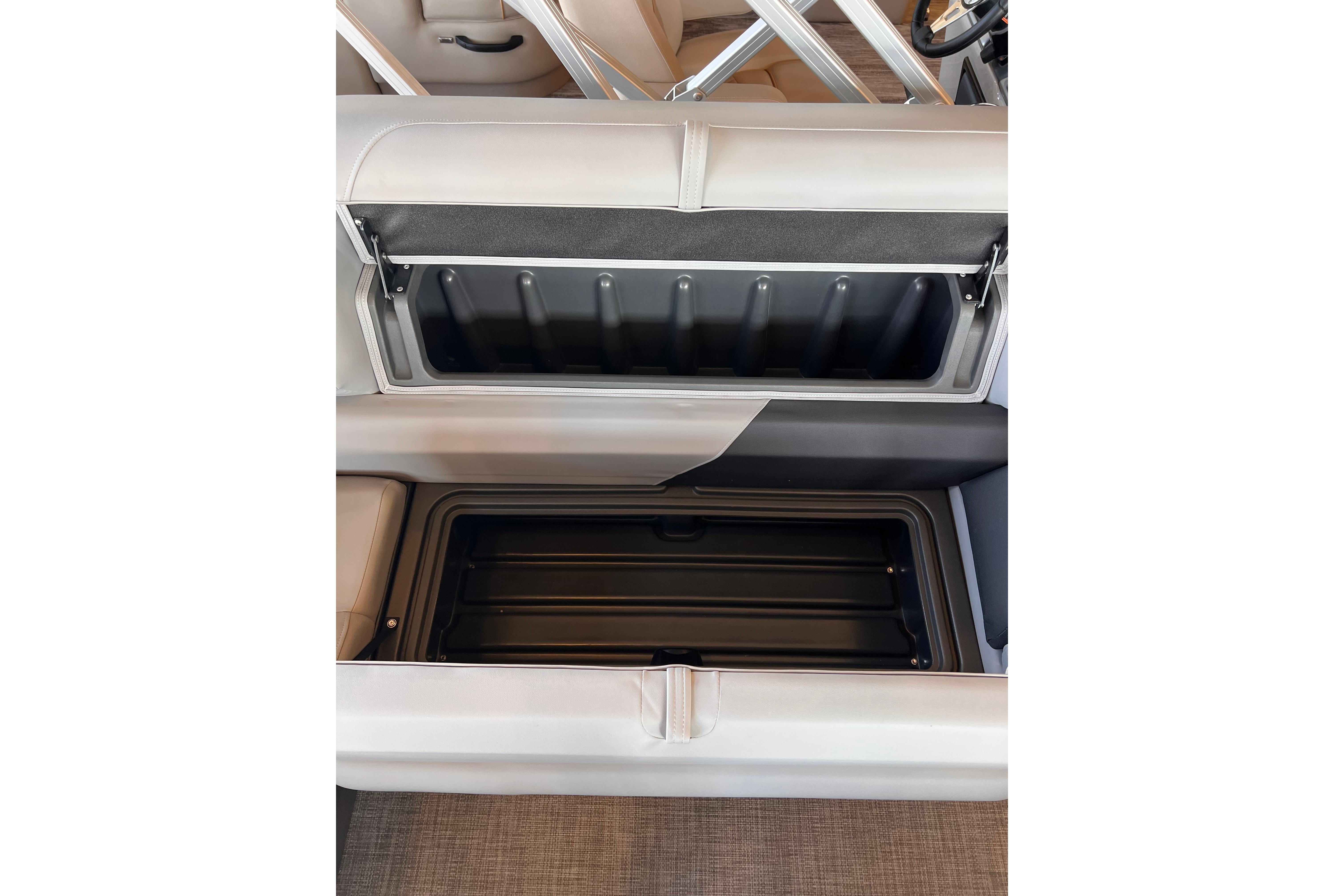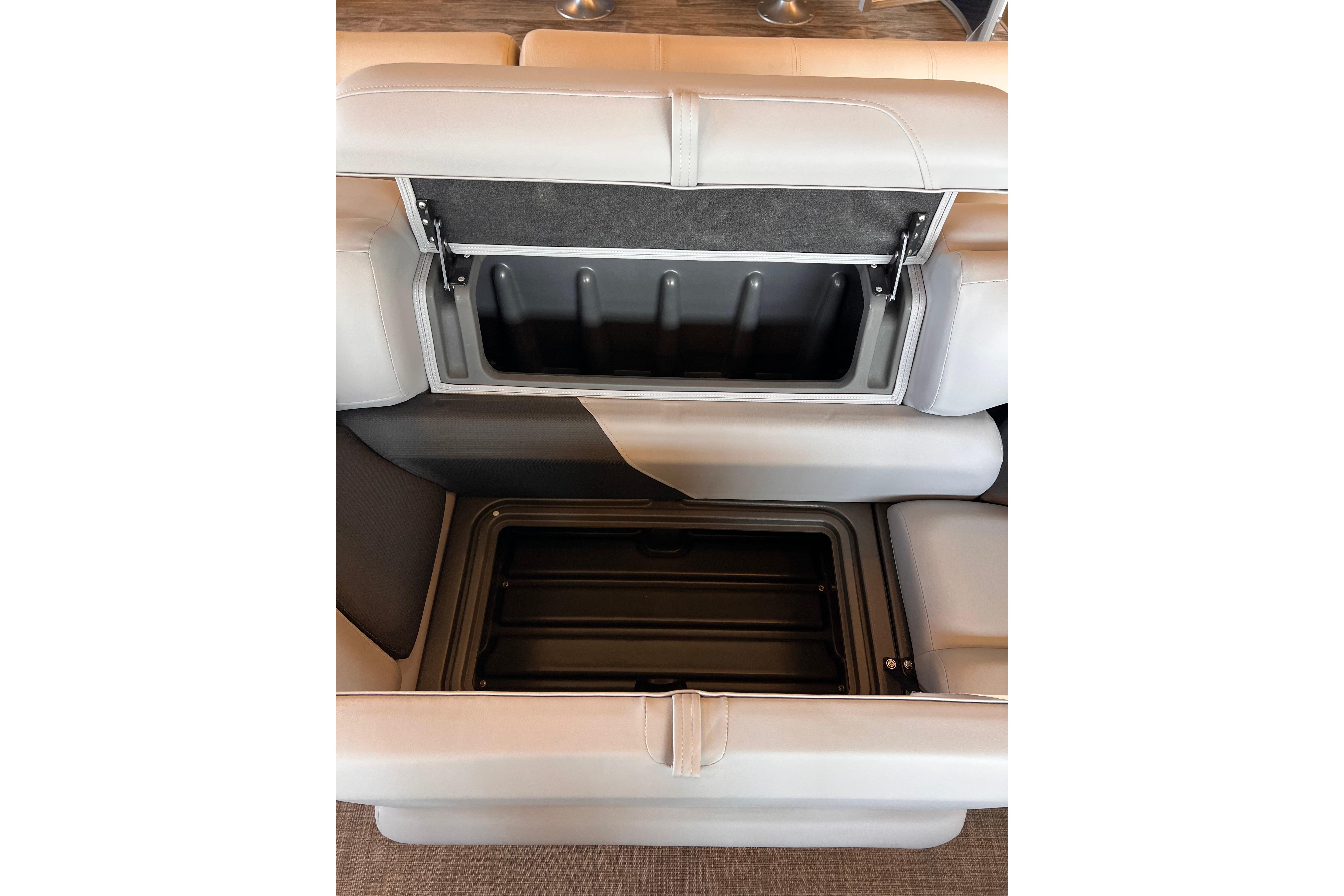 Some exciting new changes come with the 2026 model! The captain's console has received a complete facelift. The three corner lounges give your passengers plenty of space to relax in. These lounges have new accents that match the fence colors and also sport great new corner storage cubbies with more cupholders. Lift those pillow-top seats to reveal hidden storage compartments.