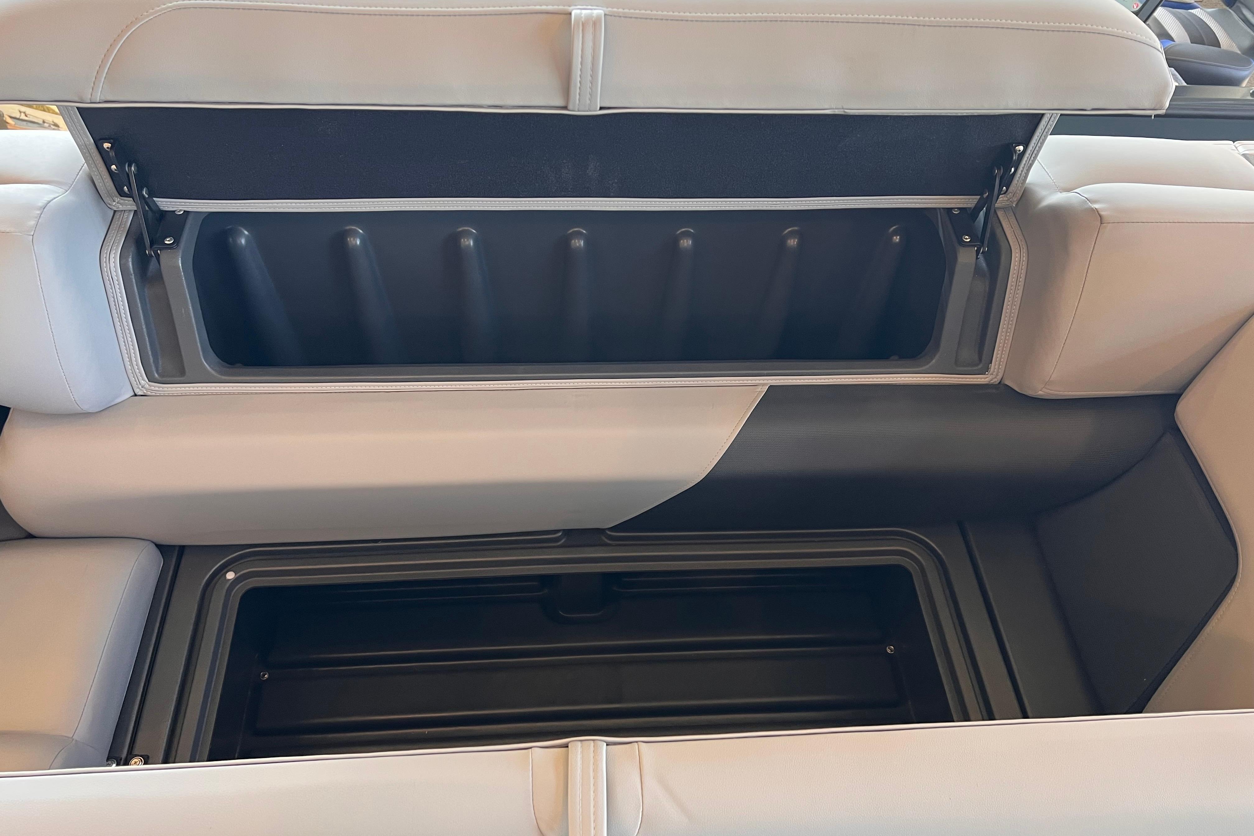 • Aft L-lounge couches w/STOW MORE™ & underseat, lockable storage