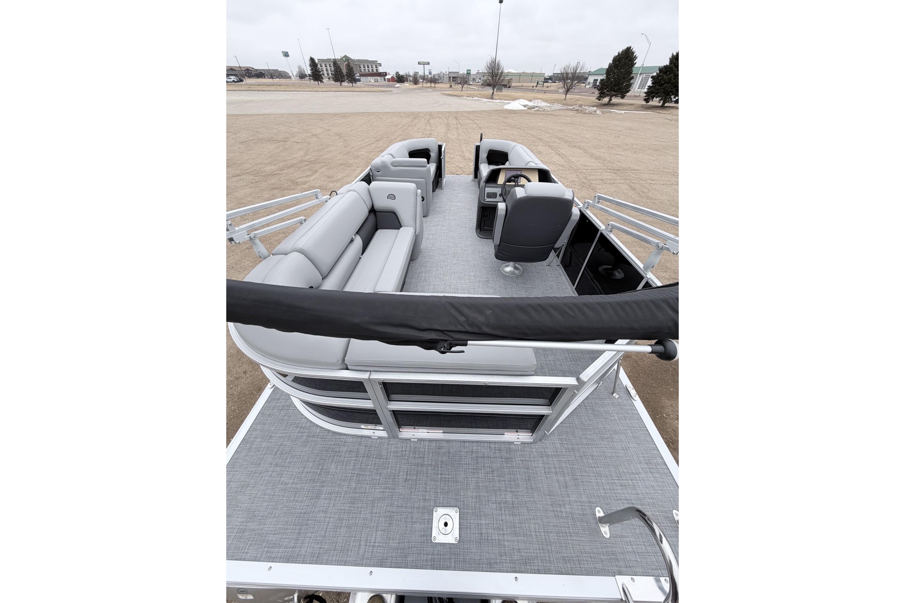 Some exciting new changes come with the 2026 model! The captain's console has received a complete facelift. The three corner lounges give your passengers plenty of space to relax in. These lounges have new accents that match the fence colors and also sport great new corner storage cubbies with more cupholders. Lift those pillow-top seats to reveal hidden storage compartments.