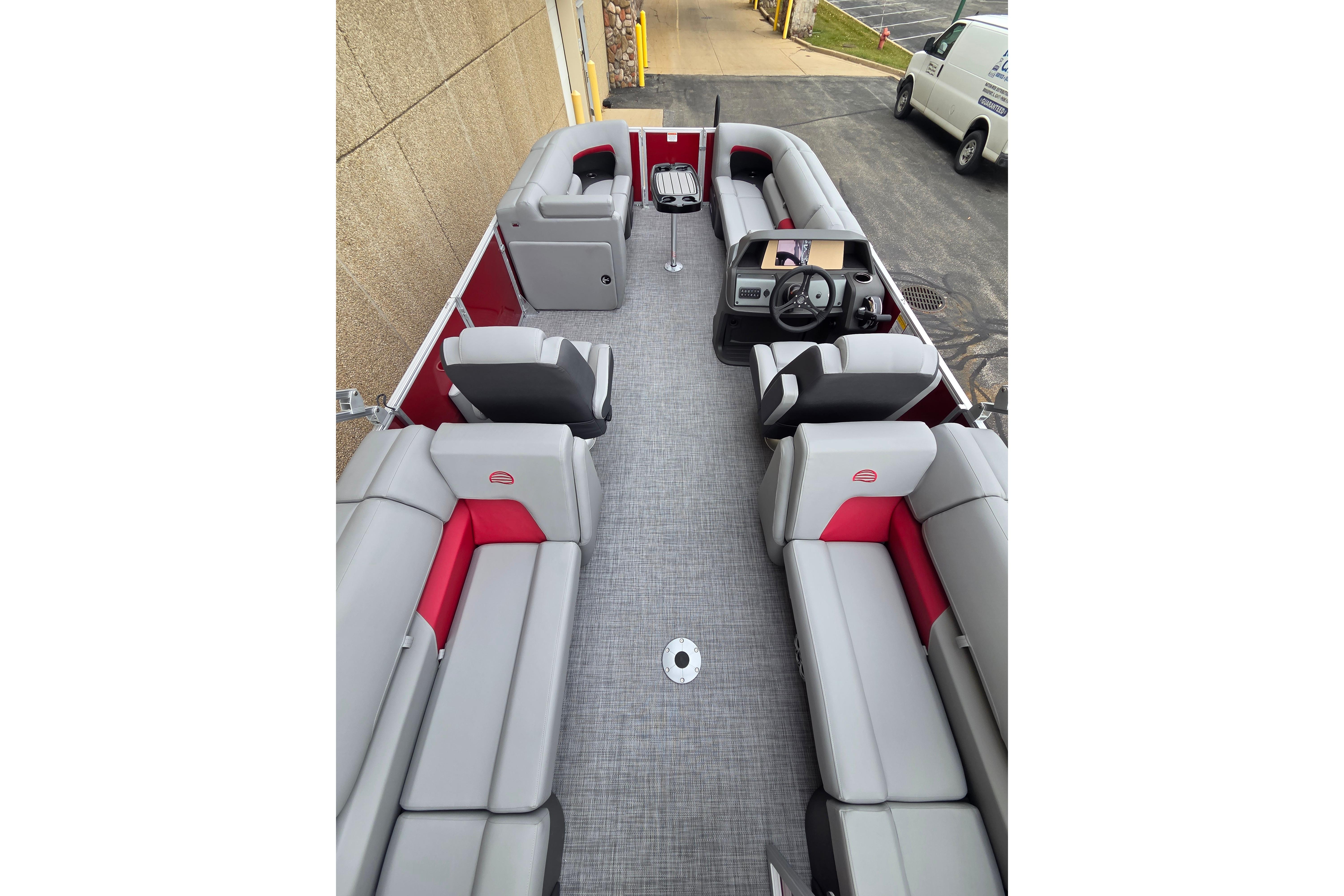 The SUN TRACKER® PARTY BARGE® 22 DLX maximizes the pontoon’s seating to provide up to an 11-passenger crew with a living-room space.