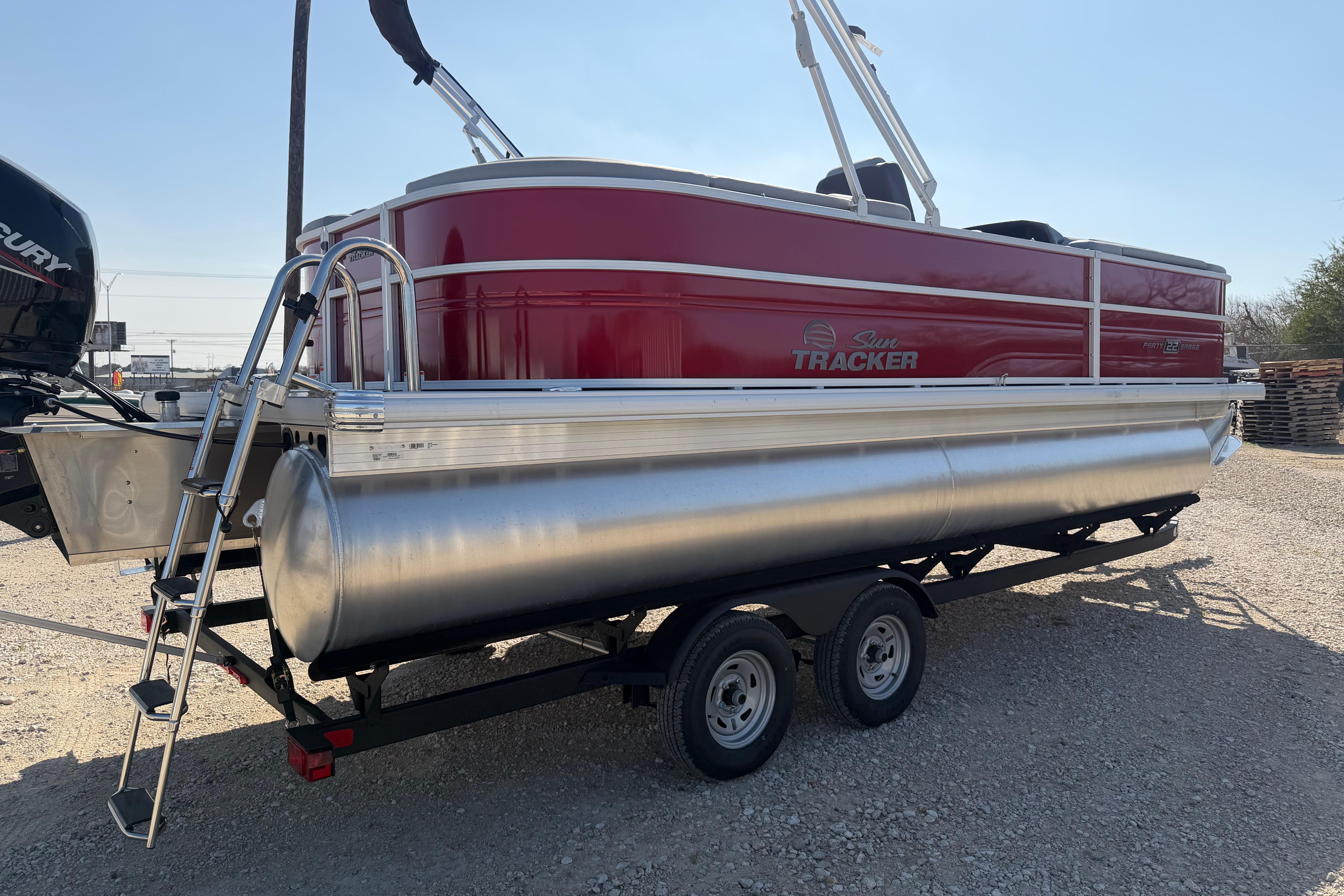 The SUN TRACKER® PARTY BARGE® 22 DLX maximizes the pontoon’s seating to provide up to an 11-passenger crew with a living-room space.