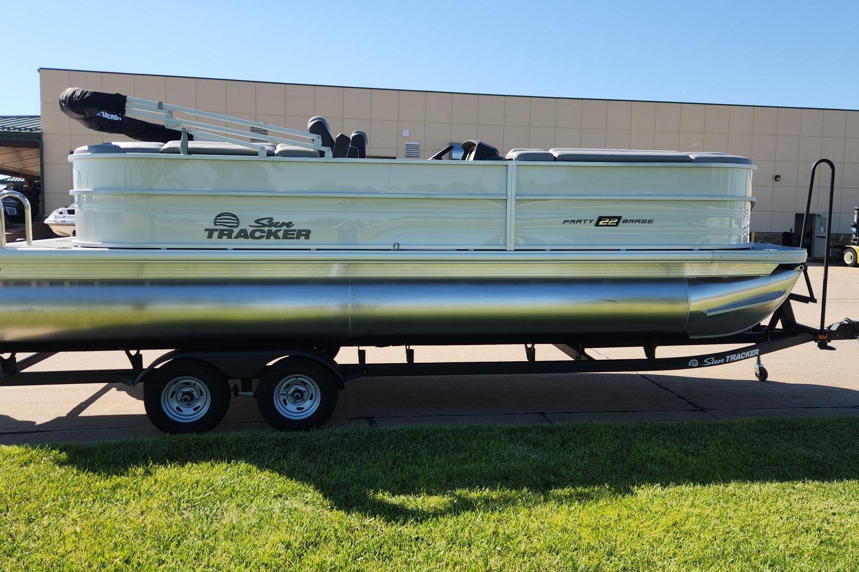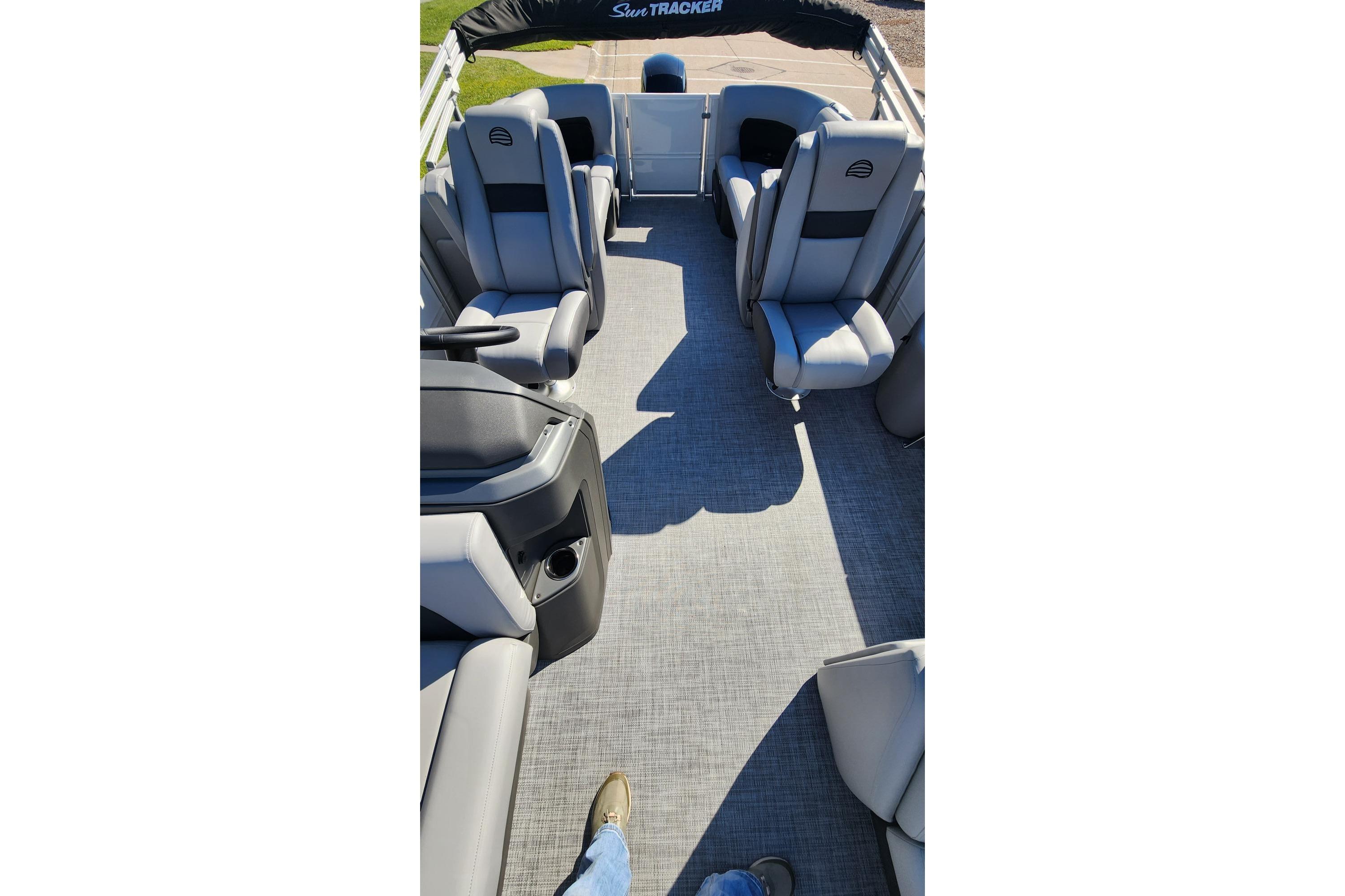 The SUN TRACKER® PARTY BARGE® 22 DLX maximizes the pontoon’s seating to provide up to an 11-passenger crew with a living-room space.