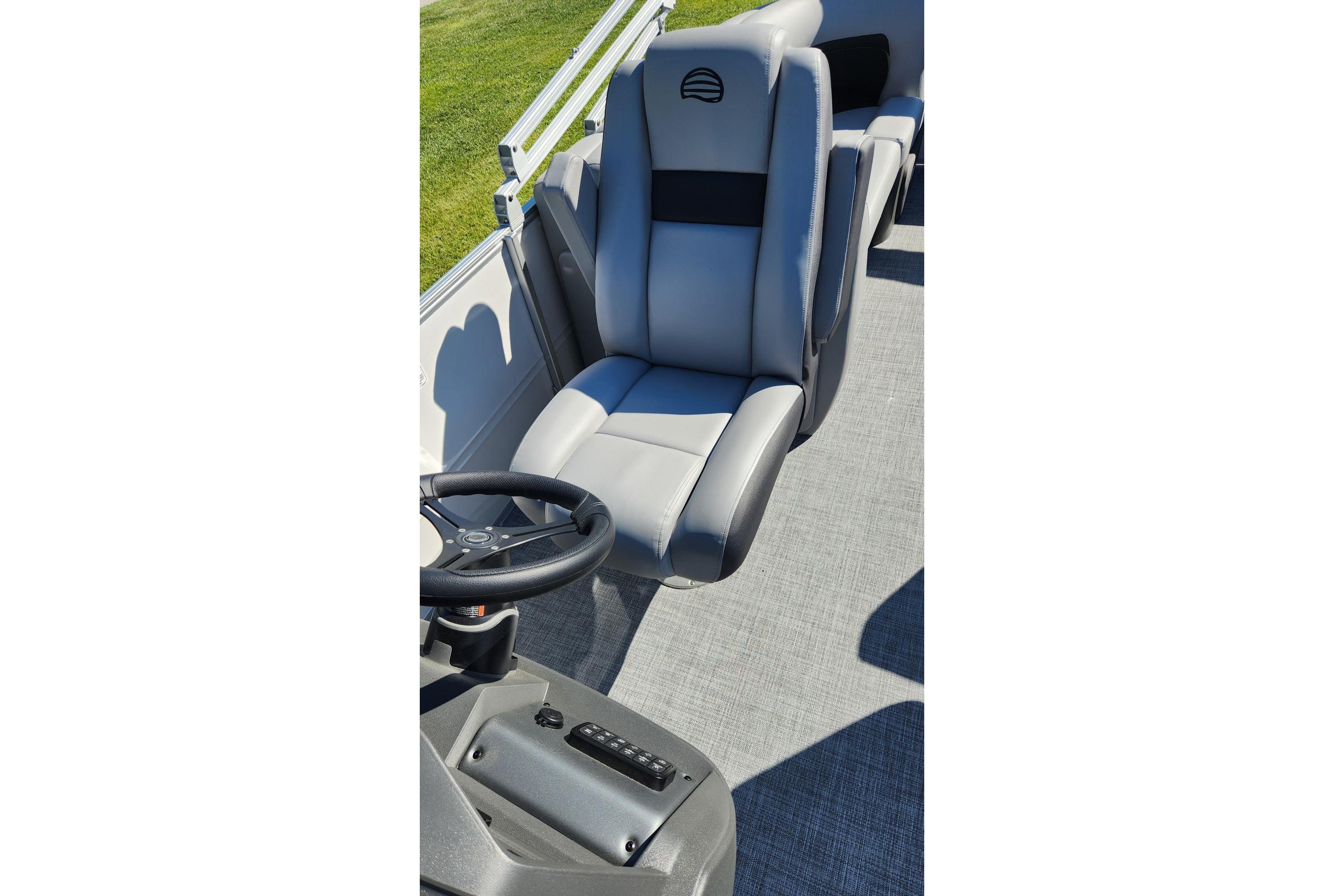 • Reclining, high-back swiveling port & helm bucket seats w/self-leveling armrests