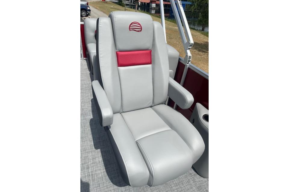 • Reclining, high-back swiveling port & helm bucket seats w/self-leveling armrests
