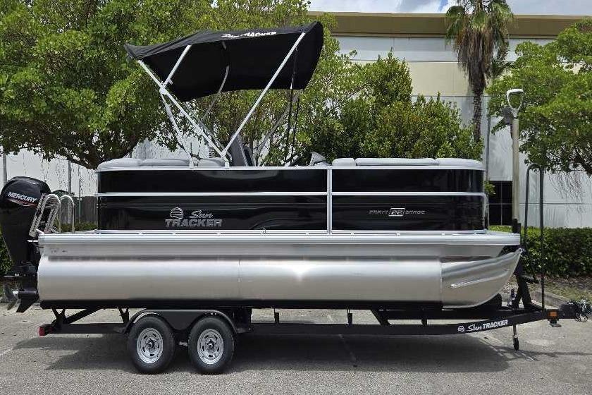 The SUN TRACKER® PARTY BARGE® 22 DLX maximizes the pontoon’s seating to provide up to an 11-passenger crew with a living-room space.