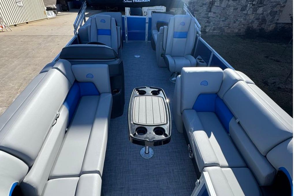 The SUN TRACKER® PARTY BARGE® 22 DLX maximizes the pontoon’s seating to provide up to an 11-passenger crew with a living-room space.