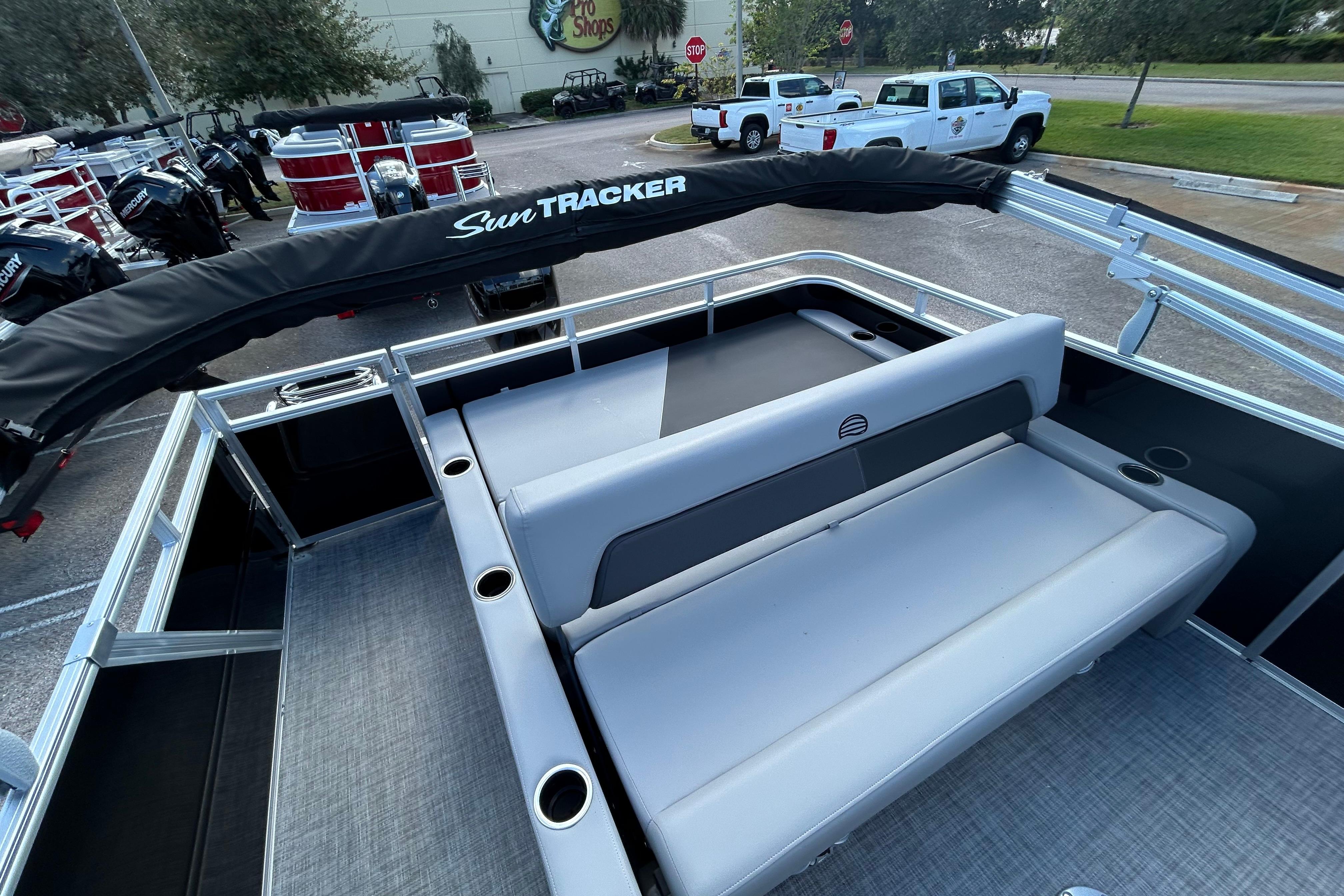 • 10' (3.05 m) Black SUN TRACKER® QuickLift™ Bimini top w/LED courtesy lights, storage pockets & protective boot