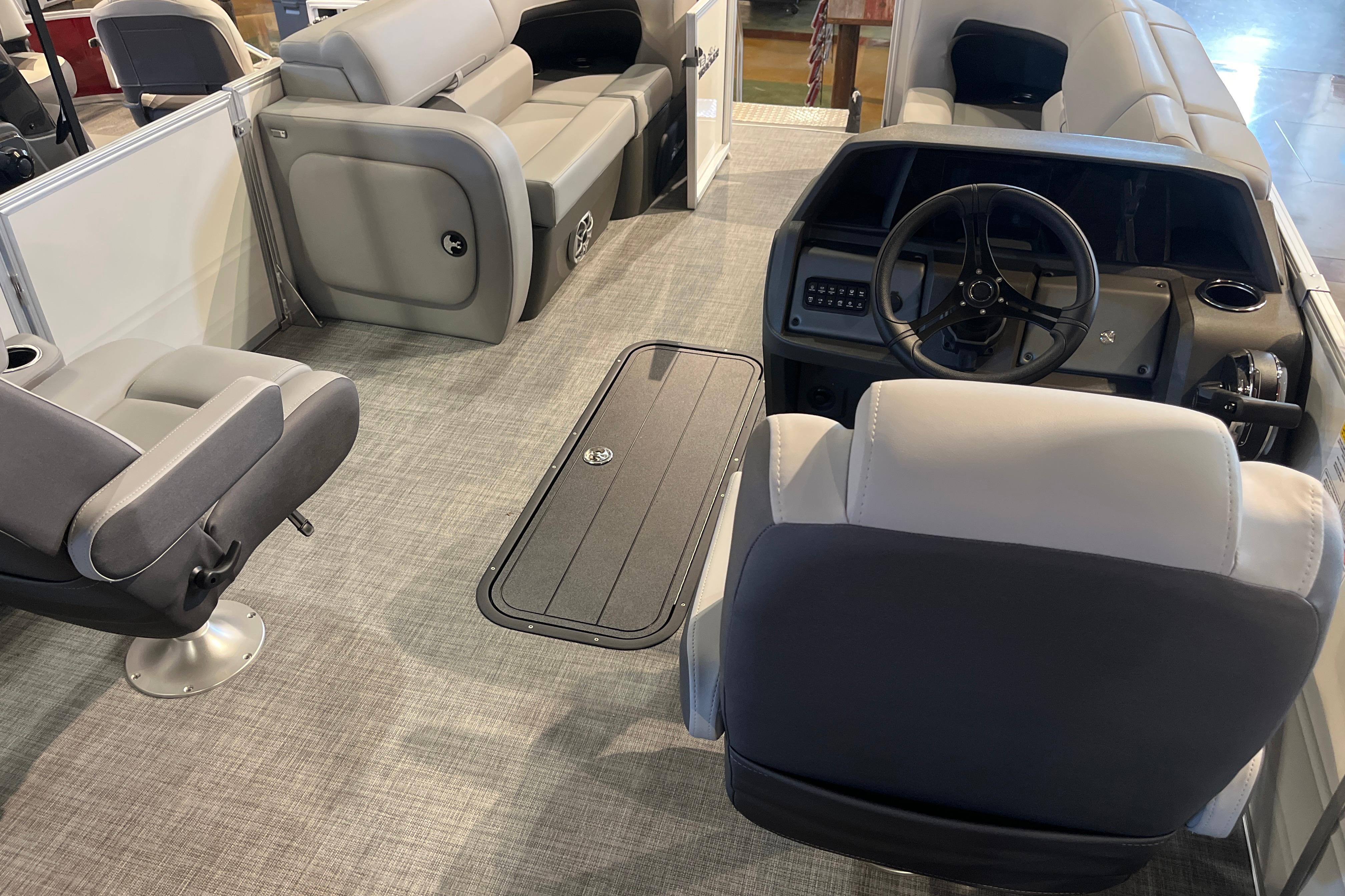 The 22 RF XP3’s third pontoon log boosts the boat’s maximum strength—as well as its standard motor—and improves the deck’s stability. From the XP3 performance strakes to the wave-deflecting nose cone, this pontoon is equipped to keep up with sport boats.