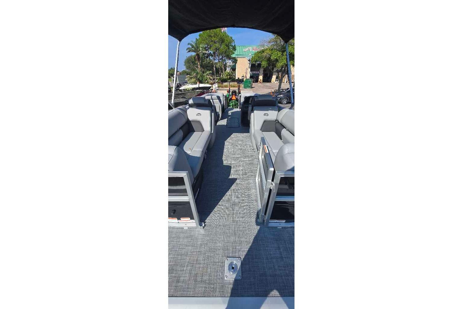 This year's 22 XP3 has an all-new interior has some exciting new features, including backrest cubbies that increase storage space and add extra cupholders that can keep larger bottles out of the way. The couches have bright accents that match the fence colors for an extra splash of style. The driver's console also got a big facelift with upgraded tech, making the PARTY BARGE the best-looking pontoon on the lake.