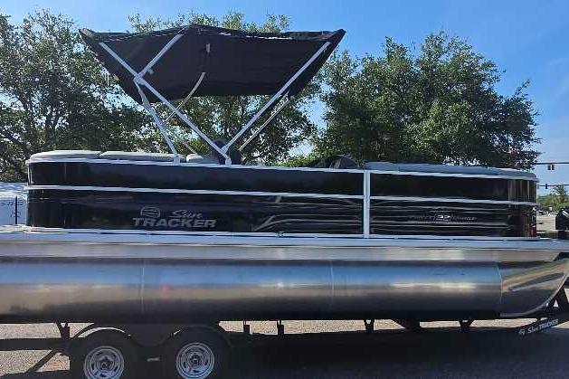 • 10' (3.05 m) Black SUN TRACKER® QuickLift™ Bimini top w/LED courtesy lights, storage pockets & protective boot